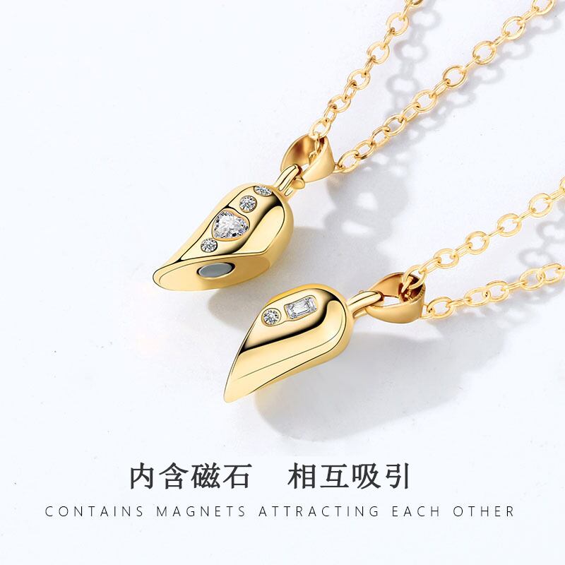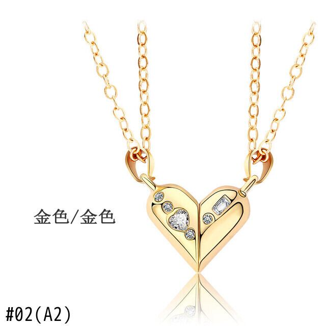 送料無料 ゴールドカラーハート型ペンダントネックレス女性男性親友磁気カップルネックレス誕生日ジュエリーギフト レース アクセサリー AE1777785593347899