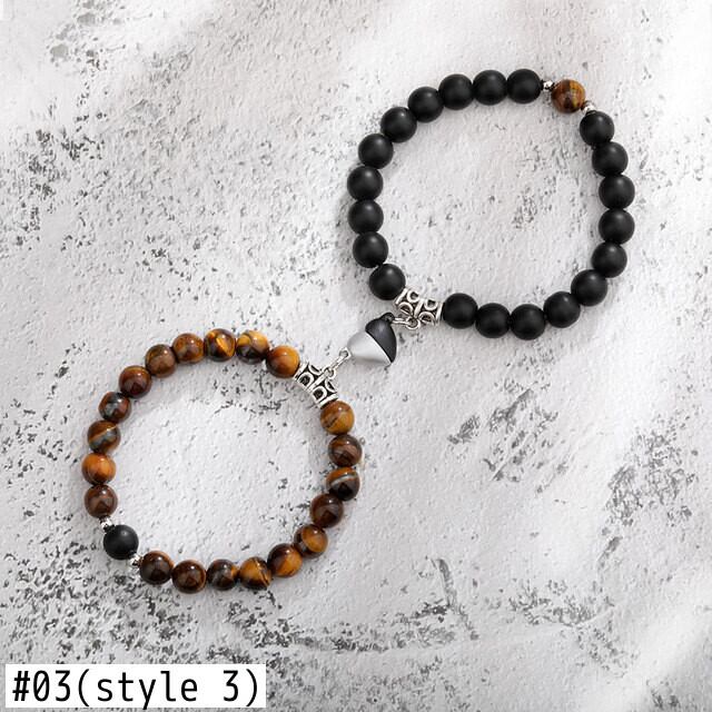 送料無料 2個/セットカップル磁気ブレスレット男性女性マグネットハート形ナチュラルタイガーアイストーンビーズブレスレット愛好家ジュエリーギフト 天然 アクセサリー AE177774964059066