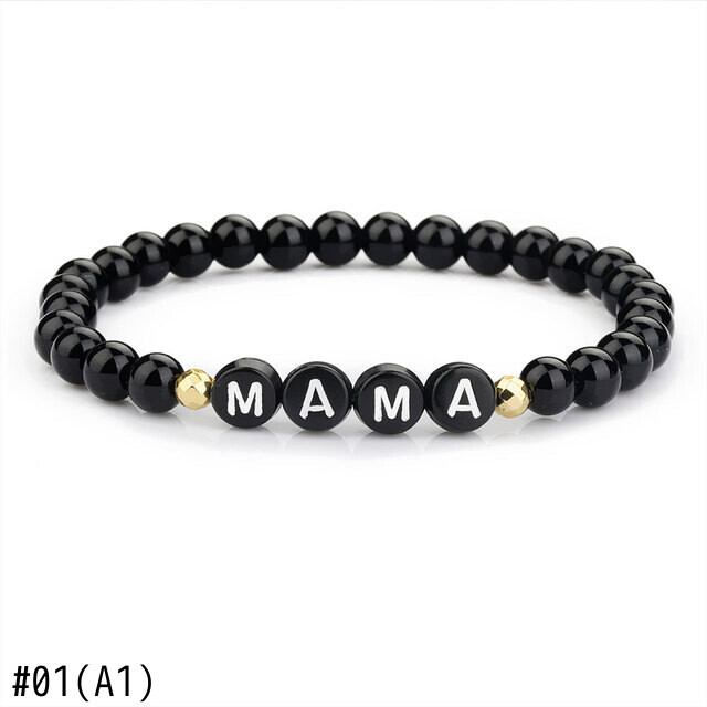 送料無料 シンプルなMAMAレターブレスレット手作りブラックナチュラル溶岩石ビーズママブレスレット女性弾性ロープジュエリーギフト エラスティック 伸縮 天然 アクセサリー AE1777774100470043