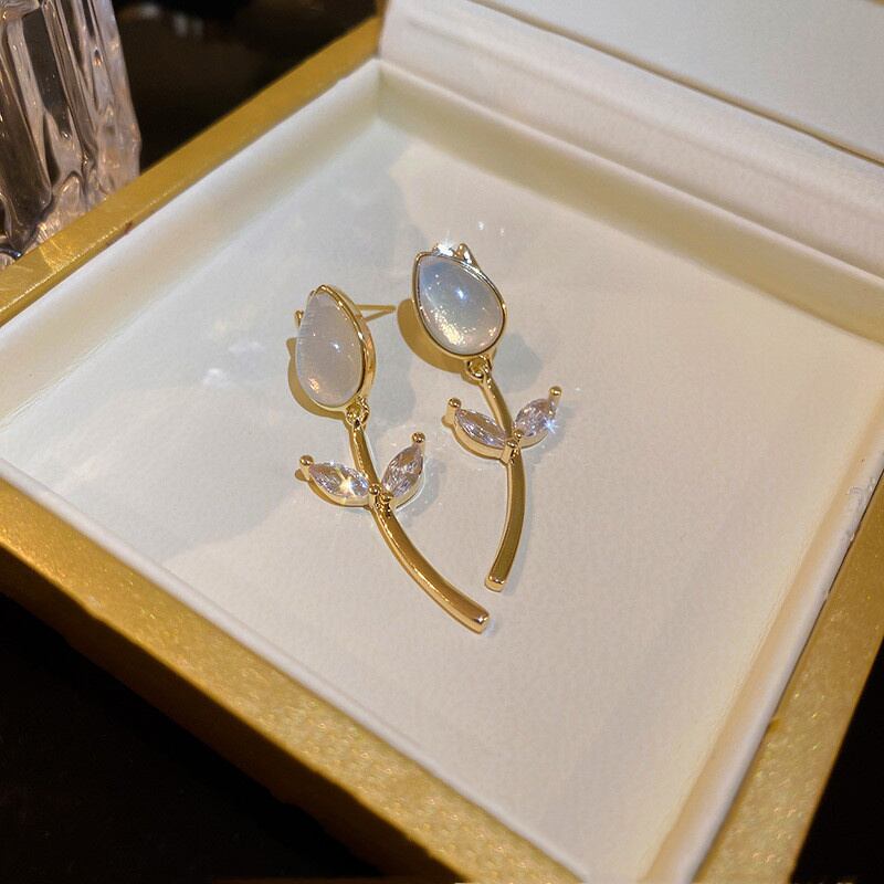 送料無料 2022非対称テルフラワーイヤリング女性オパールチューリップステートメントイヤリングガールパーティージュエリーギフト 蛋白石 指輪 フラワーデザイン アクセサリー AE1777767854350624