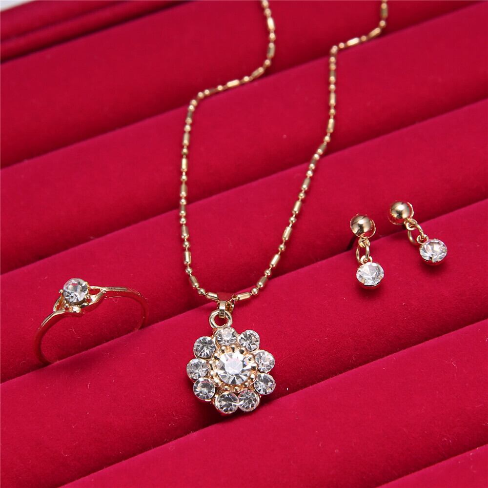 送料無料 繊細なクリスタルヒマワリペンダントネックレスイヤリングリングセットクリックエンゲージメントジュエリーセット女性の結婚披露宴ギフト レース 指輪 フラワーデザイン アクセサリー AE1777741876127993