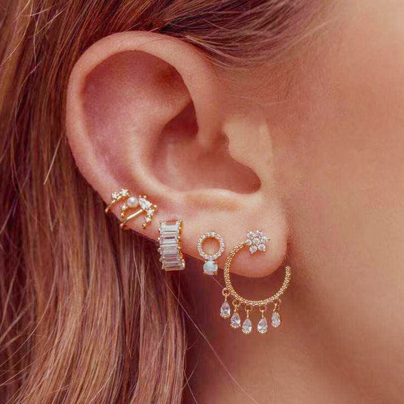 送料無料 ヴィンテージジオメトリゴールドメタルイヤリングセット女性絶妙なスタームーンテルダングルピアス2022トレンドジュエリーパーティーギフト 指輪 ビンテージ アクセサリー AE1777743294609460