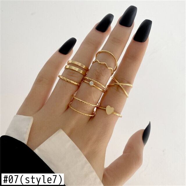 送料無料 シンプルなパンクメタルゴールドワイドチェーンリングセット女性ヴィンテージ幾何学的クロスフィンガーシンリング2022トレンディなナックルジュエリーギフト 指輪 ビンテージ アクセサリー AE177772737559384