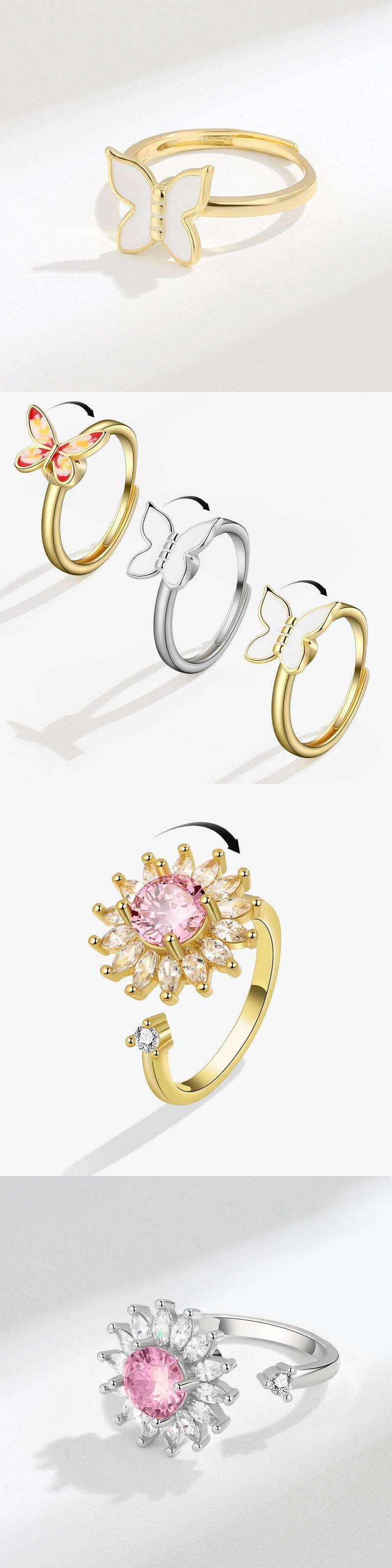 送料無料 回転調整可能な不安リング回転可能なフィジェットアンチストレスオープニングスピナーフィジェットリング出荷トレンドジュエリー アジャスタブル 指輪 アクセサリー AE1777714854048637