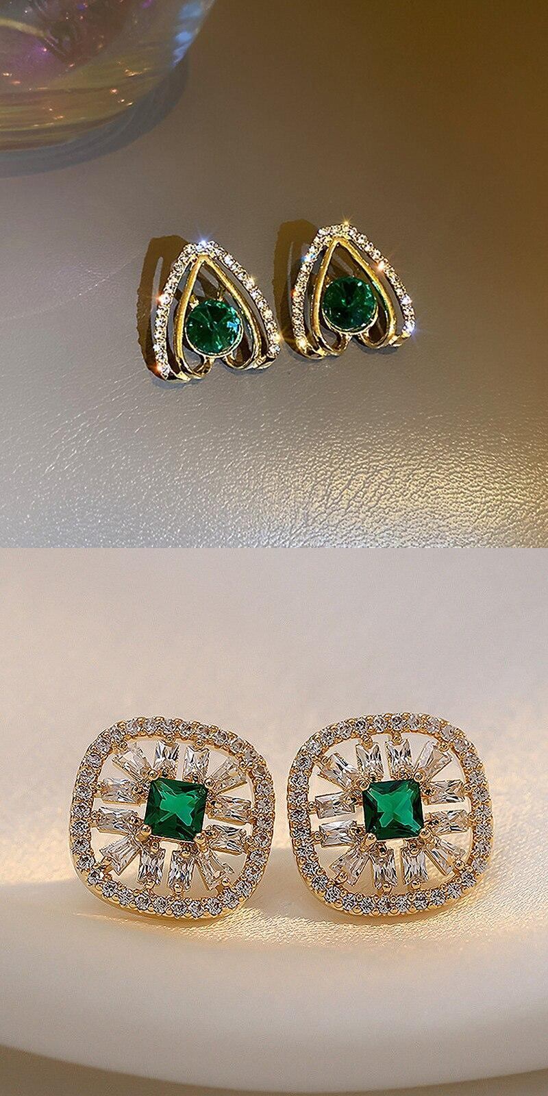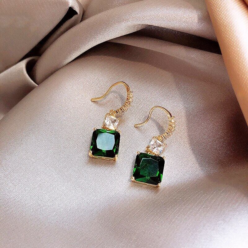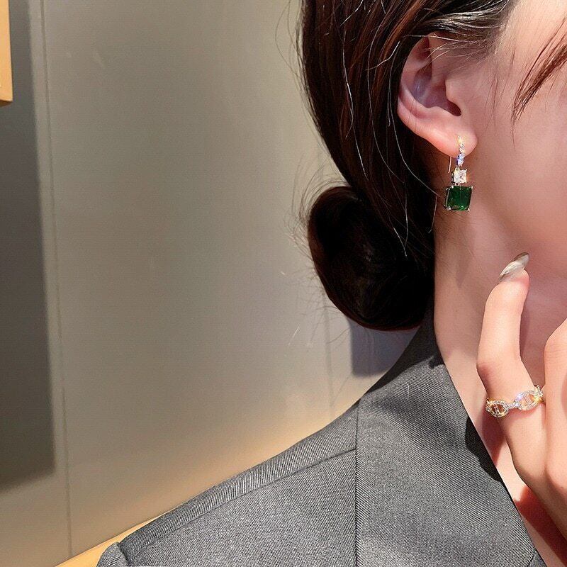 送料無料 ヴィンテージゴージャスグリーンキュービックジルコニアイヤリング女性高級AAAジルコンウェディングパーティーイヤリングレディジュエリー 指輪 風信子石 ビンテージ アクセサリー AE1777720439952540
