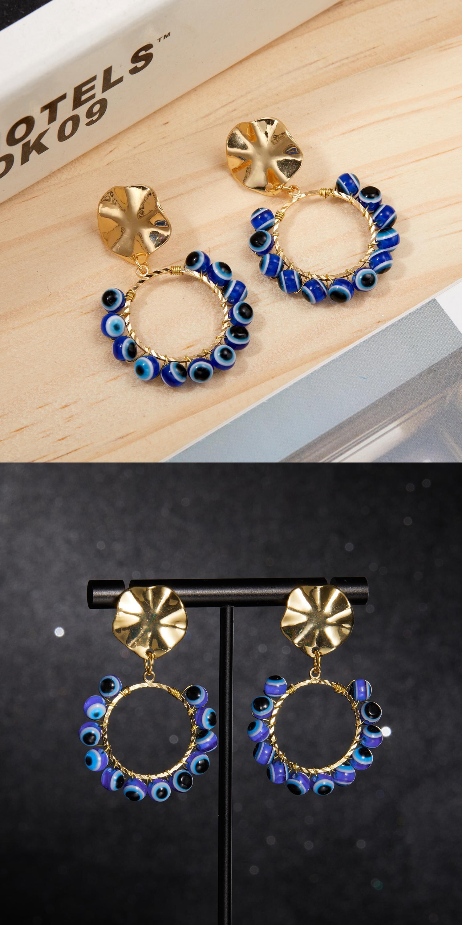 送料無料 ヴィンテージトルコの邪眼ステートメントイヤリング女性ヴィンテージゴールデンラウンドダングルピアス2022トレンドジュエリーギフト 指輪 ビンテージ アクセサリー AE1777778520164167