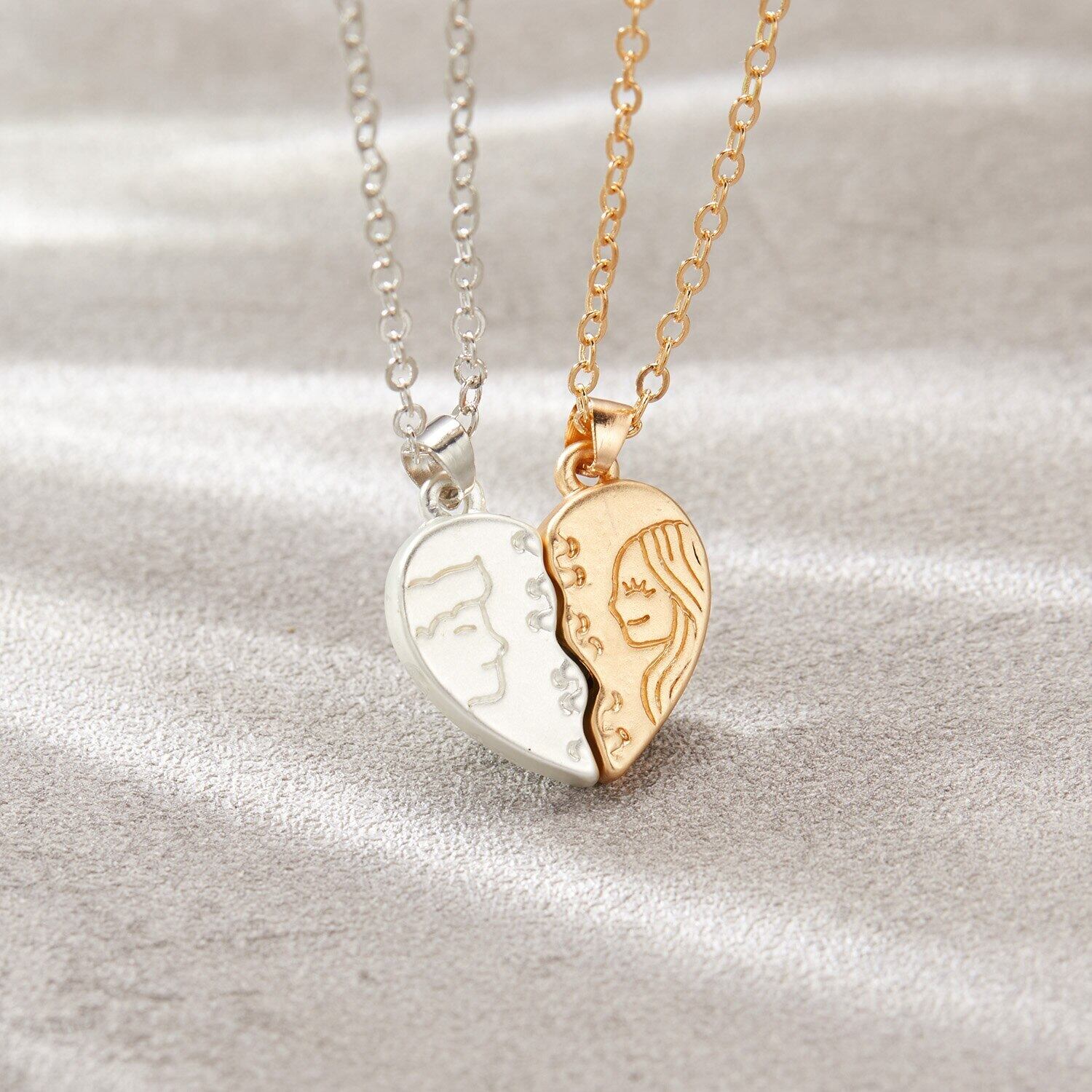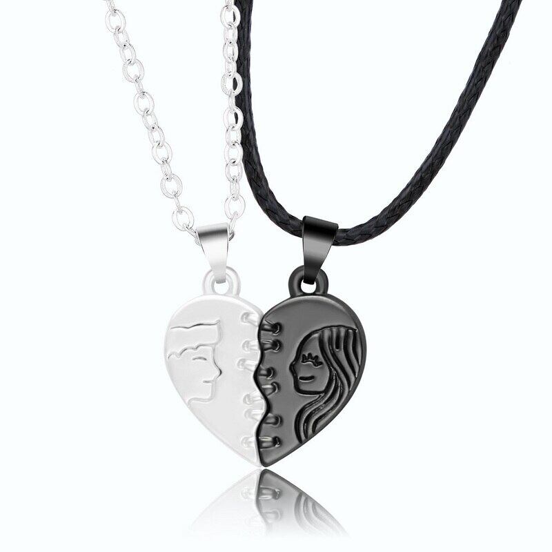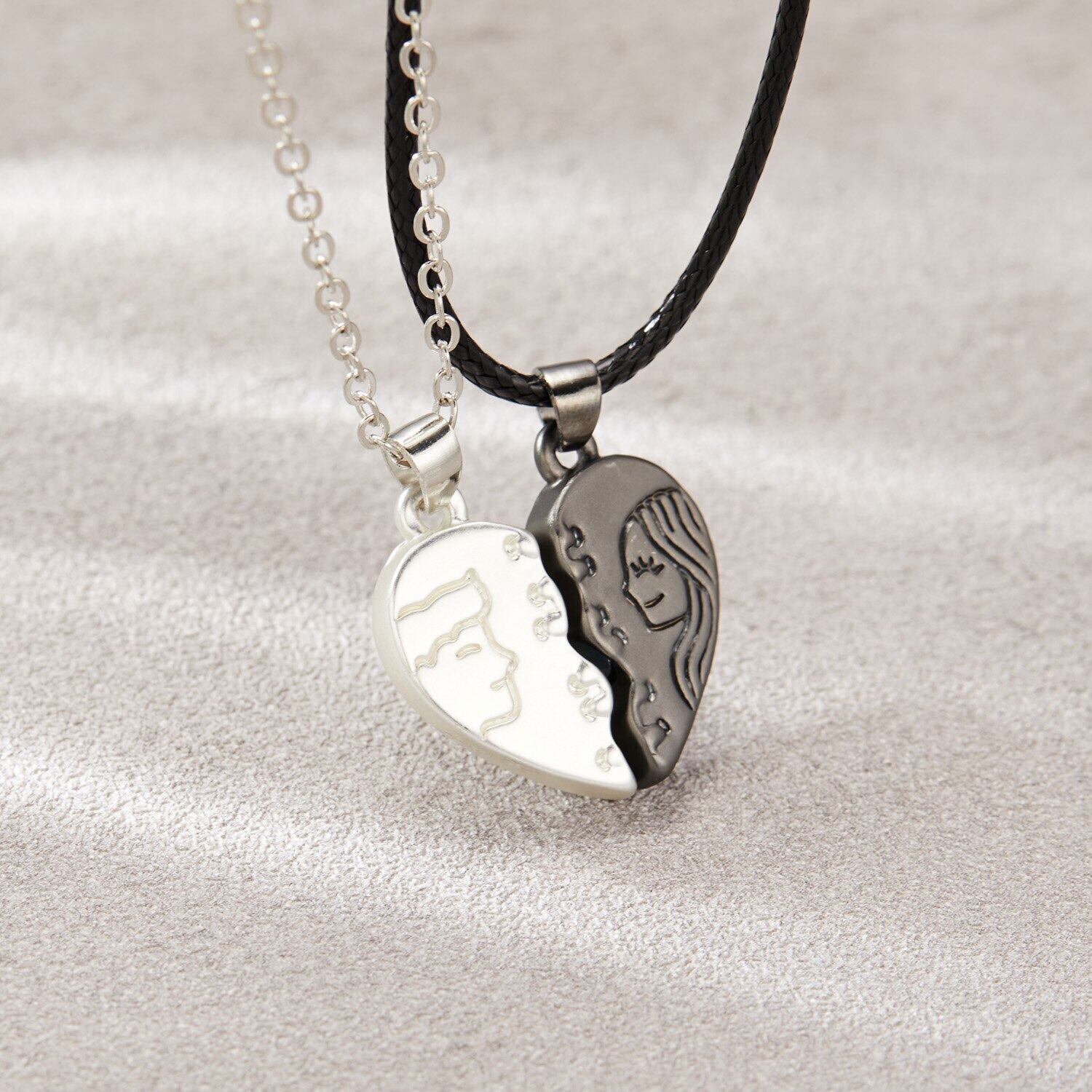 送料無料 2個マグネティックカップルネックレスパンクブラックホワイトラバーズハートペンダントネックレス女性男性誕生日パーティージュエリークリスマスギフト レース アクセサリー AE1777768844050187
