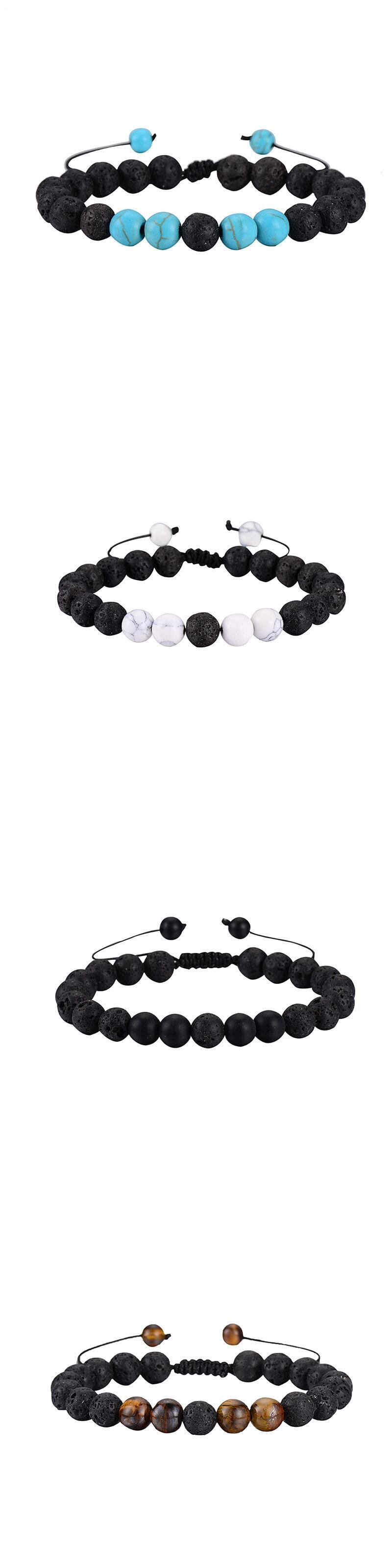 送料無料 8mmブラックナチュラル溶岩ストーンタイガーアイビーズヨガブレスレット男性女性7チャクラ調節可能な手作りの編みこみのブレスレットジュエリー アジャスタブル 天然 アクセサリー AE1777736549189705