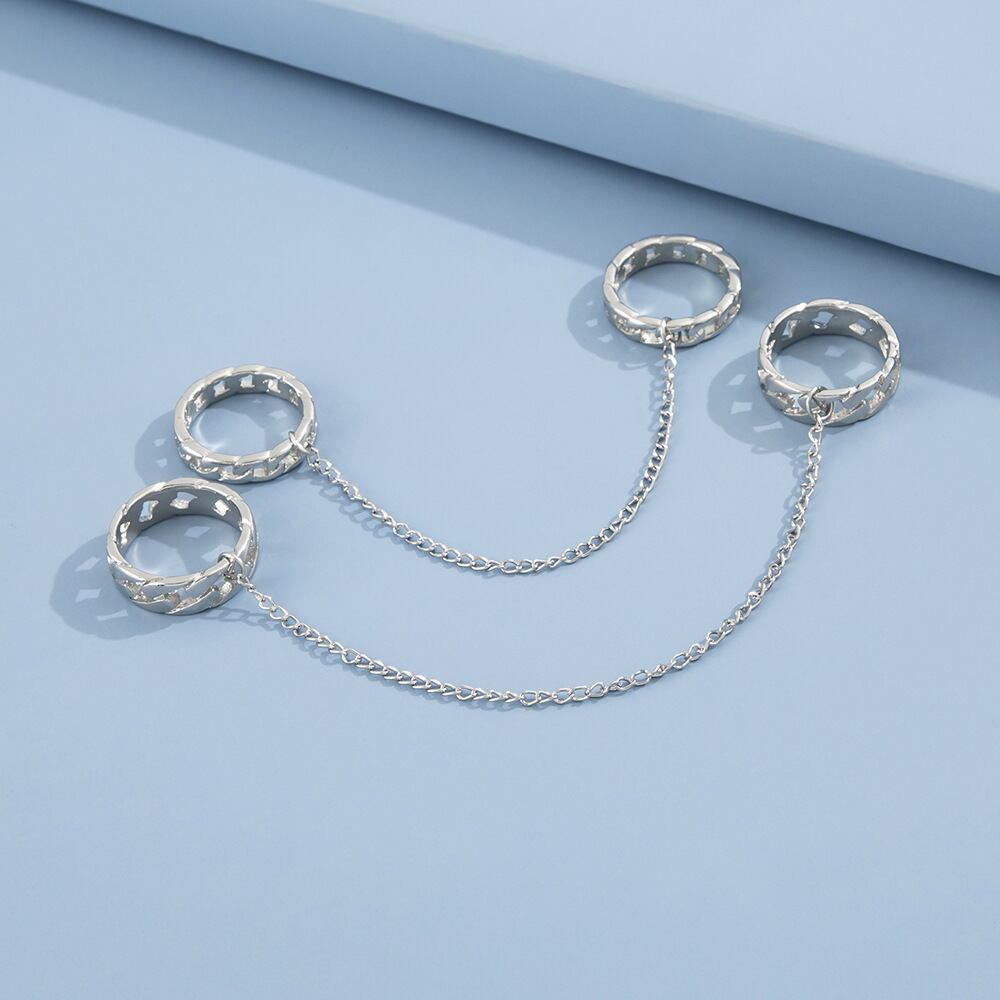 送料無料 パンククールヒップホップチェーンリングマルチレイヤーアジャスタブルオープンフィンガーリングセットアロイマンジョイントリングウィメンズパーティーギフトジュエリー2022 指輪 アクセサリー AE1777788607071628