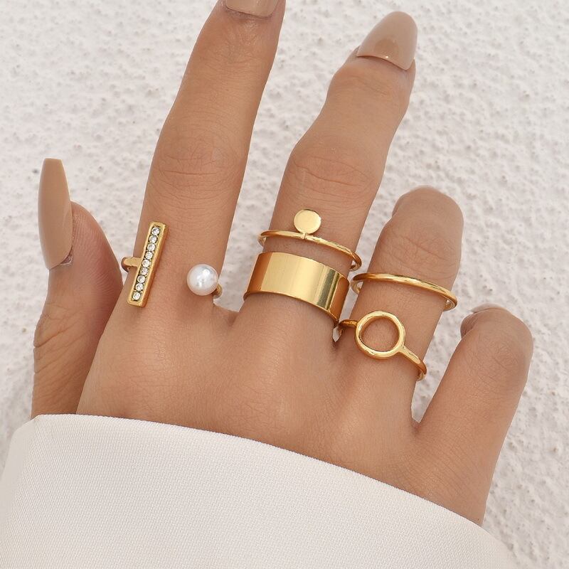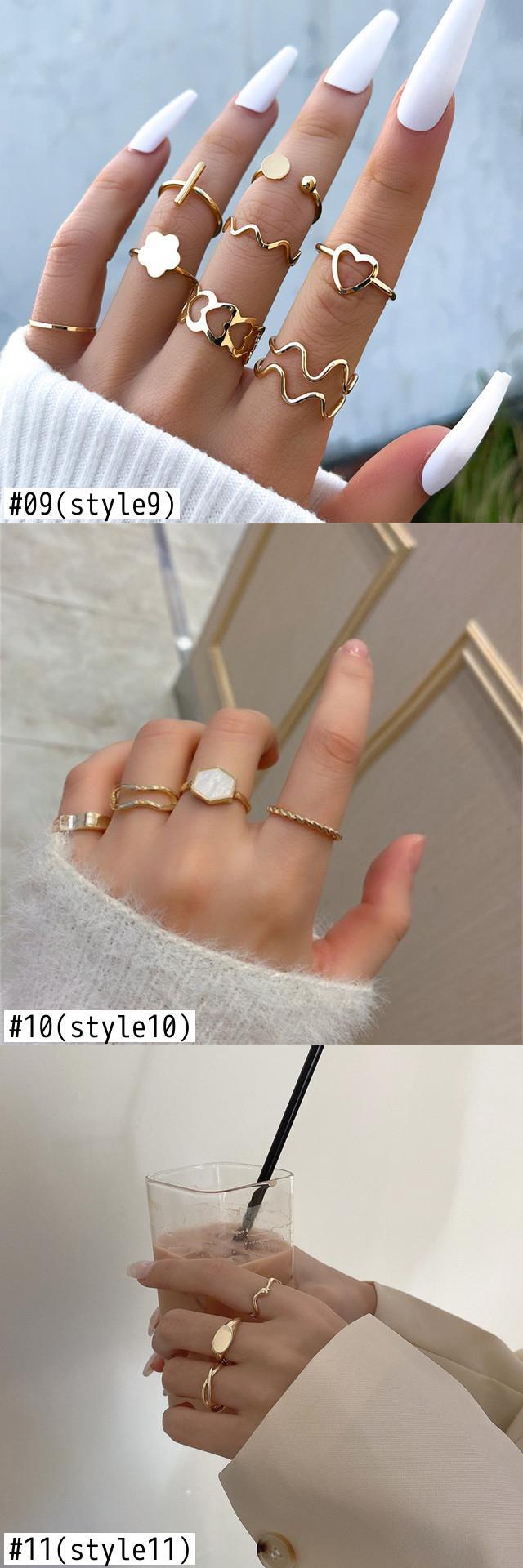 送料無料 自由奔放に生きるパンクゴールド幾何学的なワイドチェーンリングセット女性の女の子クロスツイストフィンガーリング2022ナックルジュエリーギフト 指輪 アクセサリー AE1777729831232699