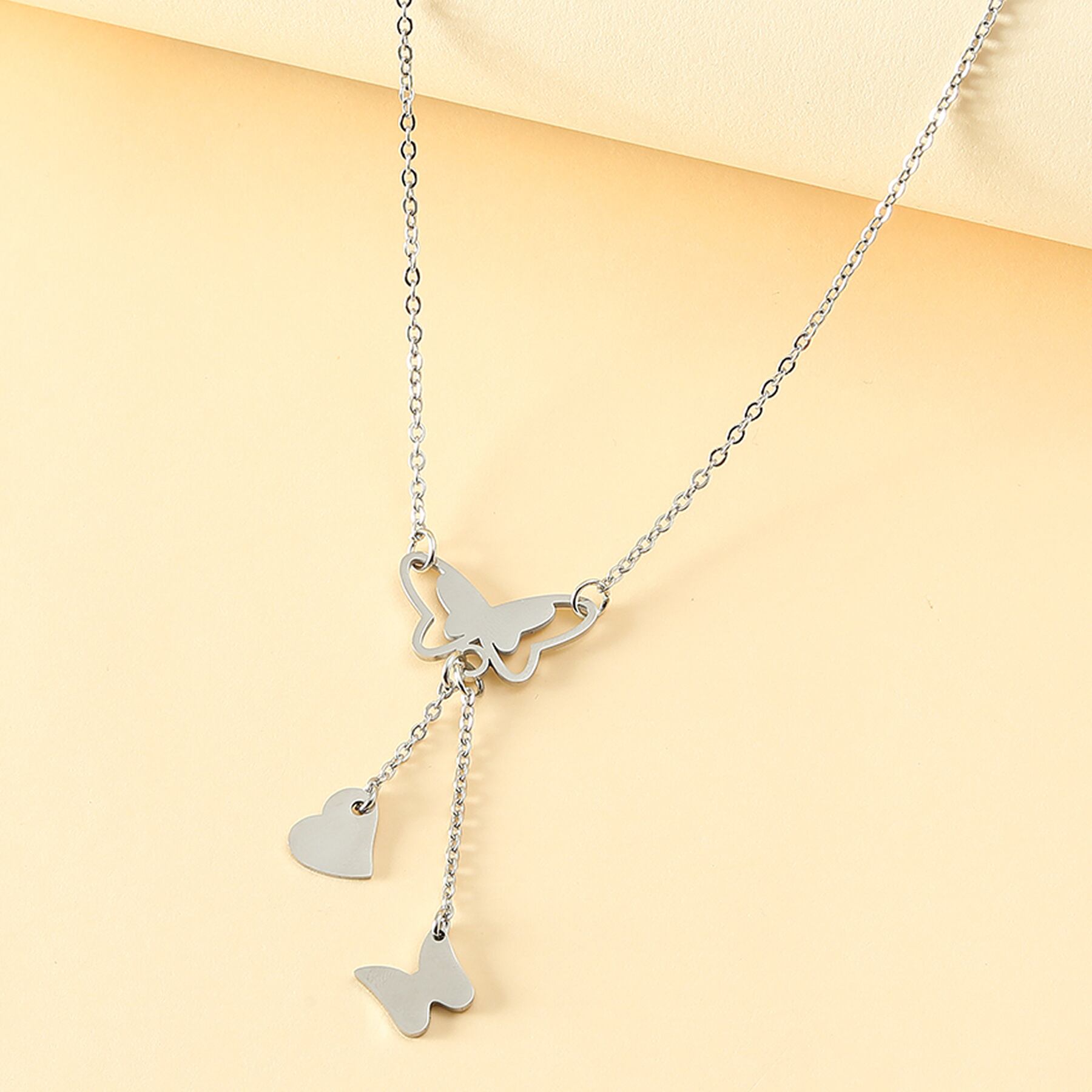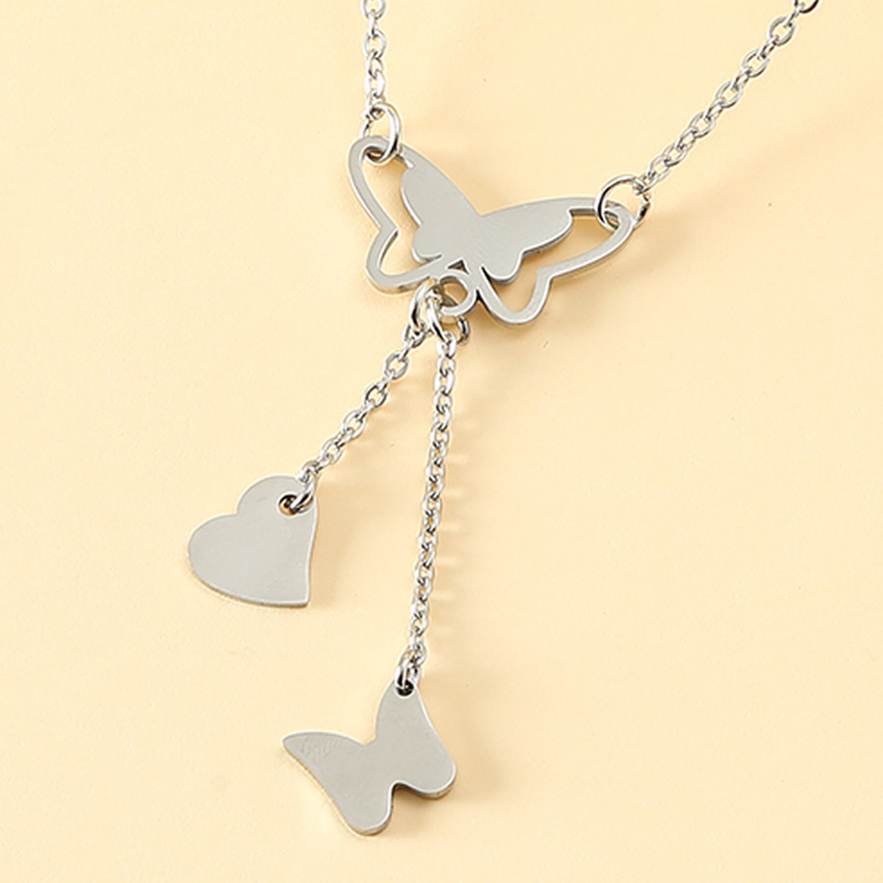 送料無料 絶妙なシルバーカラーバタフライネックレス女性ステンレス鋼電話鎖骨チェーンネックレス女の子友情ジュエリー レース 銀 アクセサリー AE1777711580082747