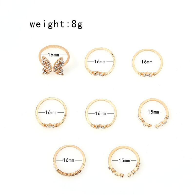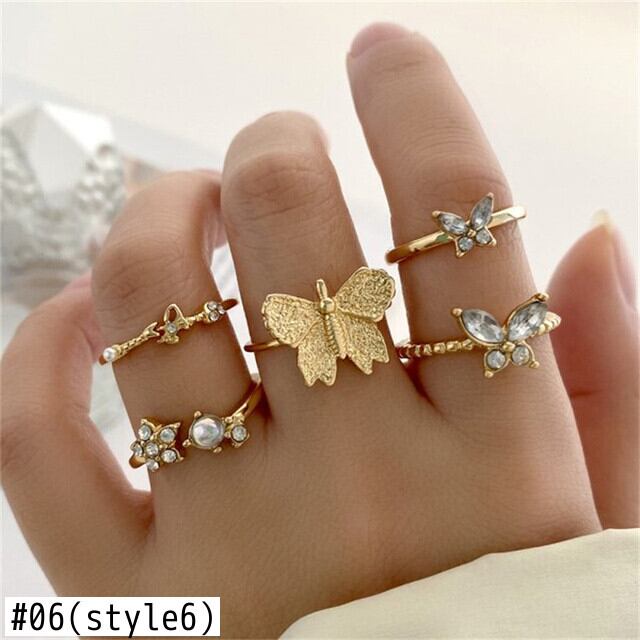 送料無料 ヴィンテージボヘミアンバタフライゴールドカラーリングセットジルコンフラワーリーフオープニングフィンガーリング女性用シンプルナックルアクセサリー 指輪 フラワーデザイン ビンテージ アクセサリー AE1777720322379038