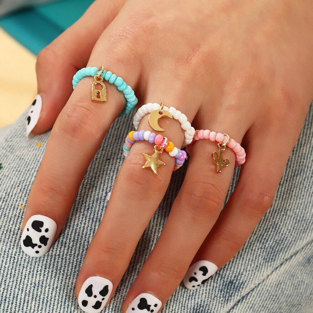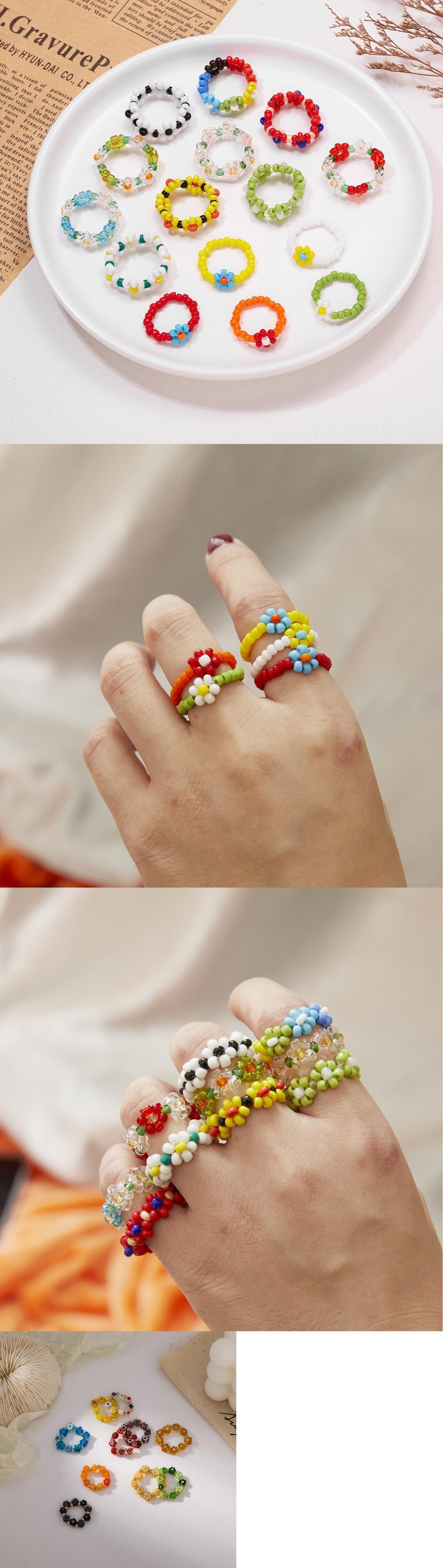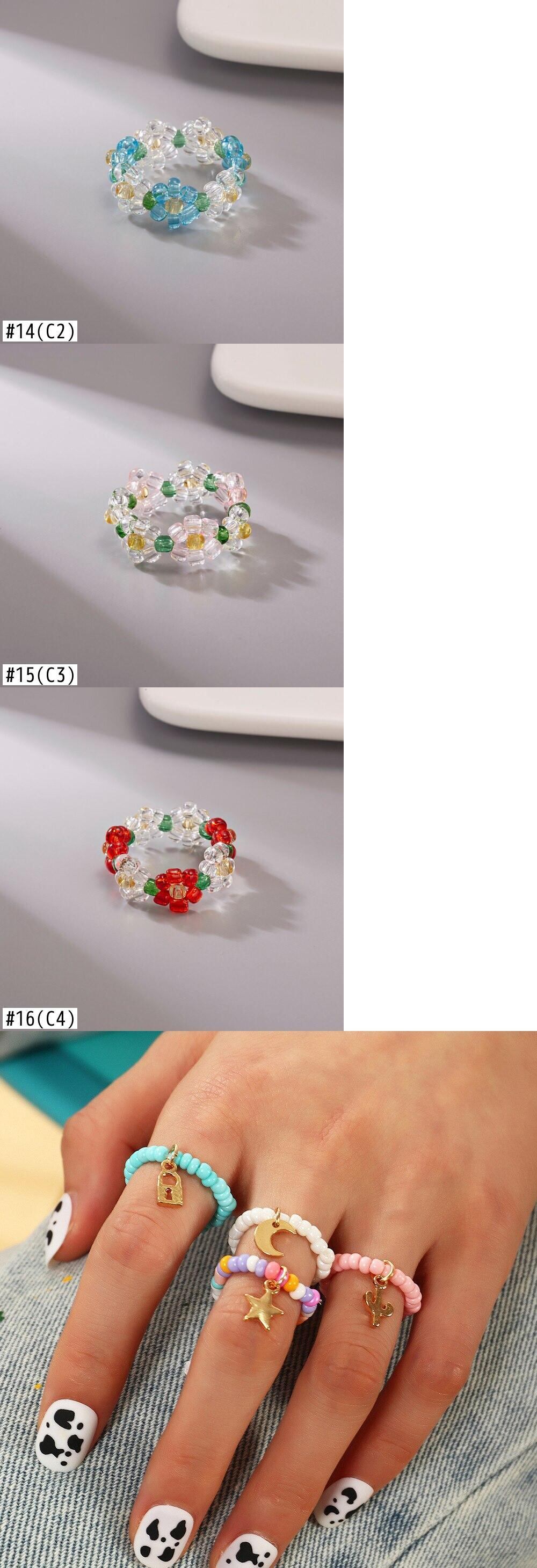 送料無料 ボヘミアンハンドメイドカラフルビーズライスビーズリング女性調節可能なストレッチロープチェーンフィンガーリングガールパーティージュエリーギフト アジャスタブル 指輪 アクセサリー AE177774242996559