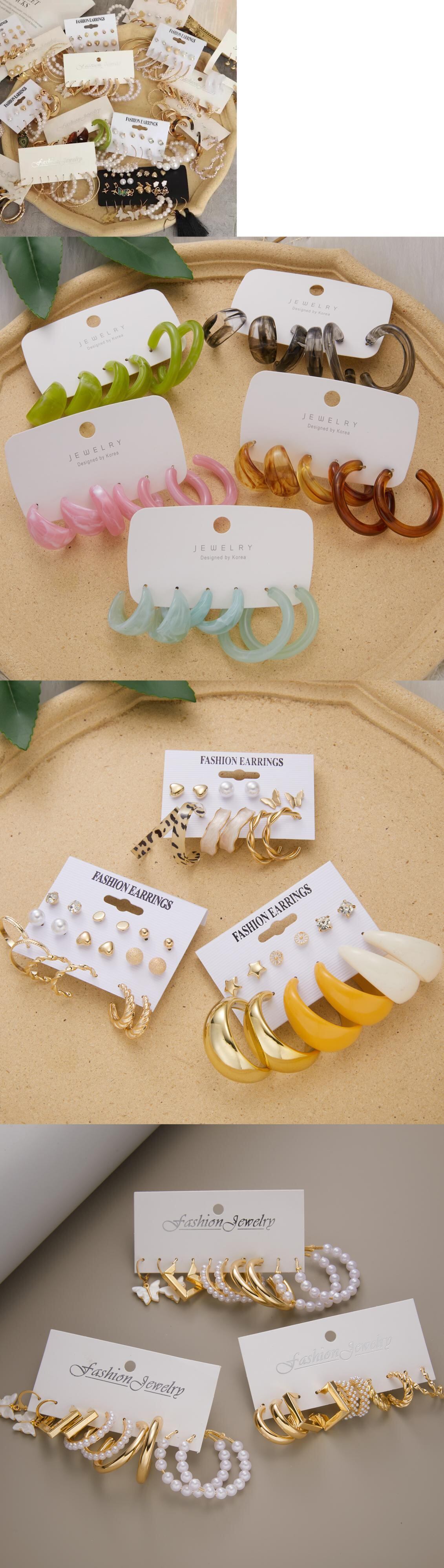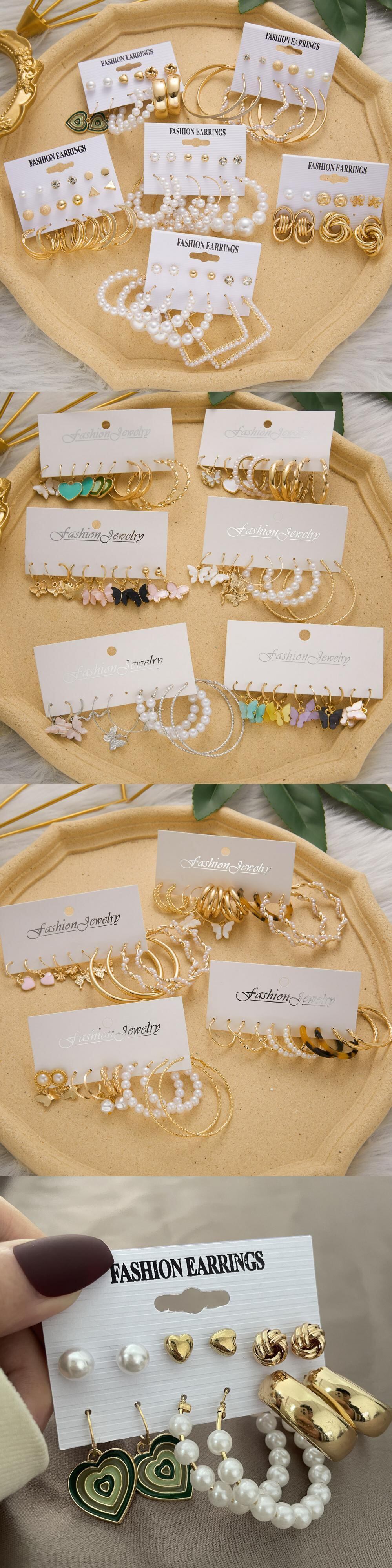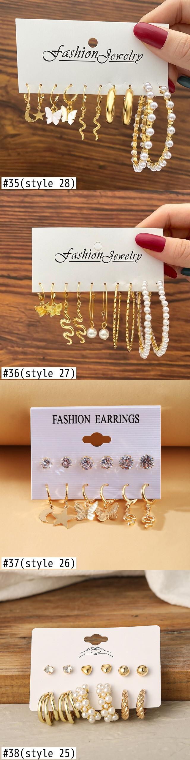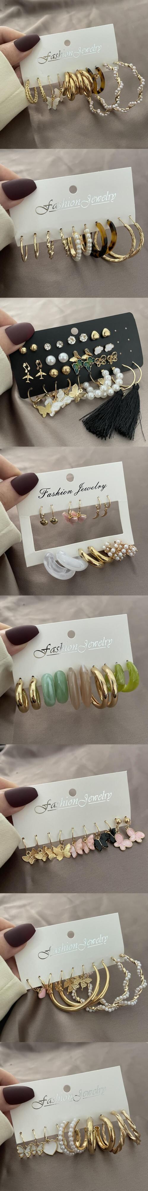 送料無料 トレンディなパンクゴールドシルバーカラースネークバタフライピアスセット女性パールアクリルメタルサークルフープピアスジュエリー イヤリング 真珠 リング 指輪 銀 アクセサリー AE1777762223115492