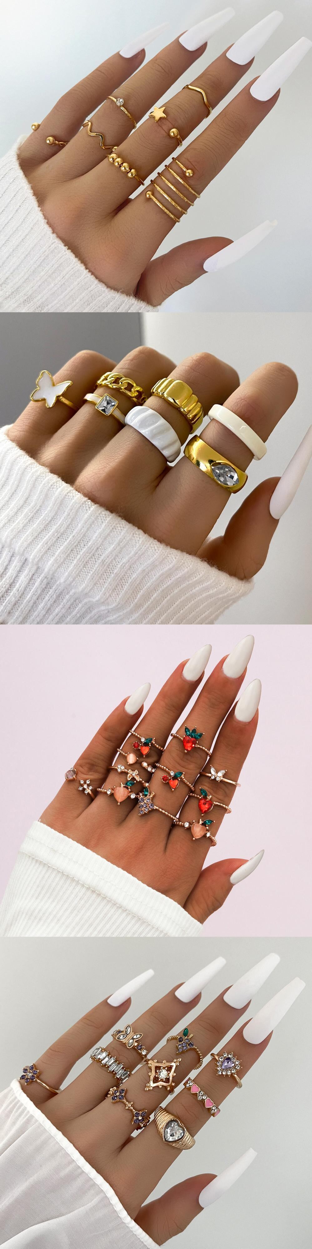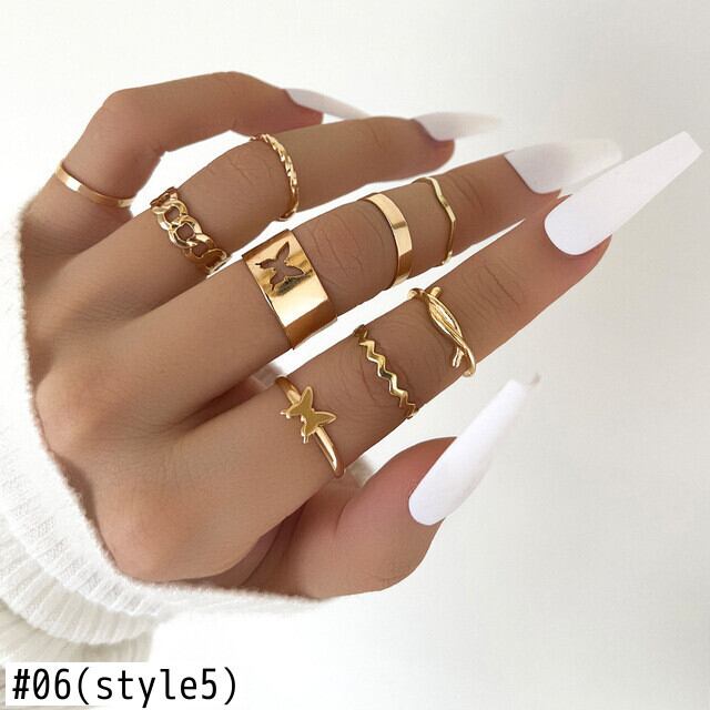 送料無料 5個/セットパンクゴールドチェーンワイドフィンガーリングミニマリストバタフライジオメトリックメタルリングレディースガールズパーティージュエリービジュー 指輪 アクセサリー AE1777787752905512