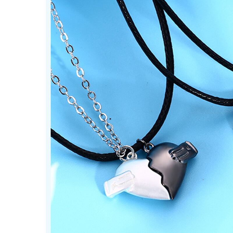 送料無料 磁気カップルネックレス愛好家ブロークンハートペンダント遠距離恋愛チャームネックレス女性バレンタインデーギフト2021 ロング レース アクセサリー AE1777741983501860