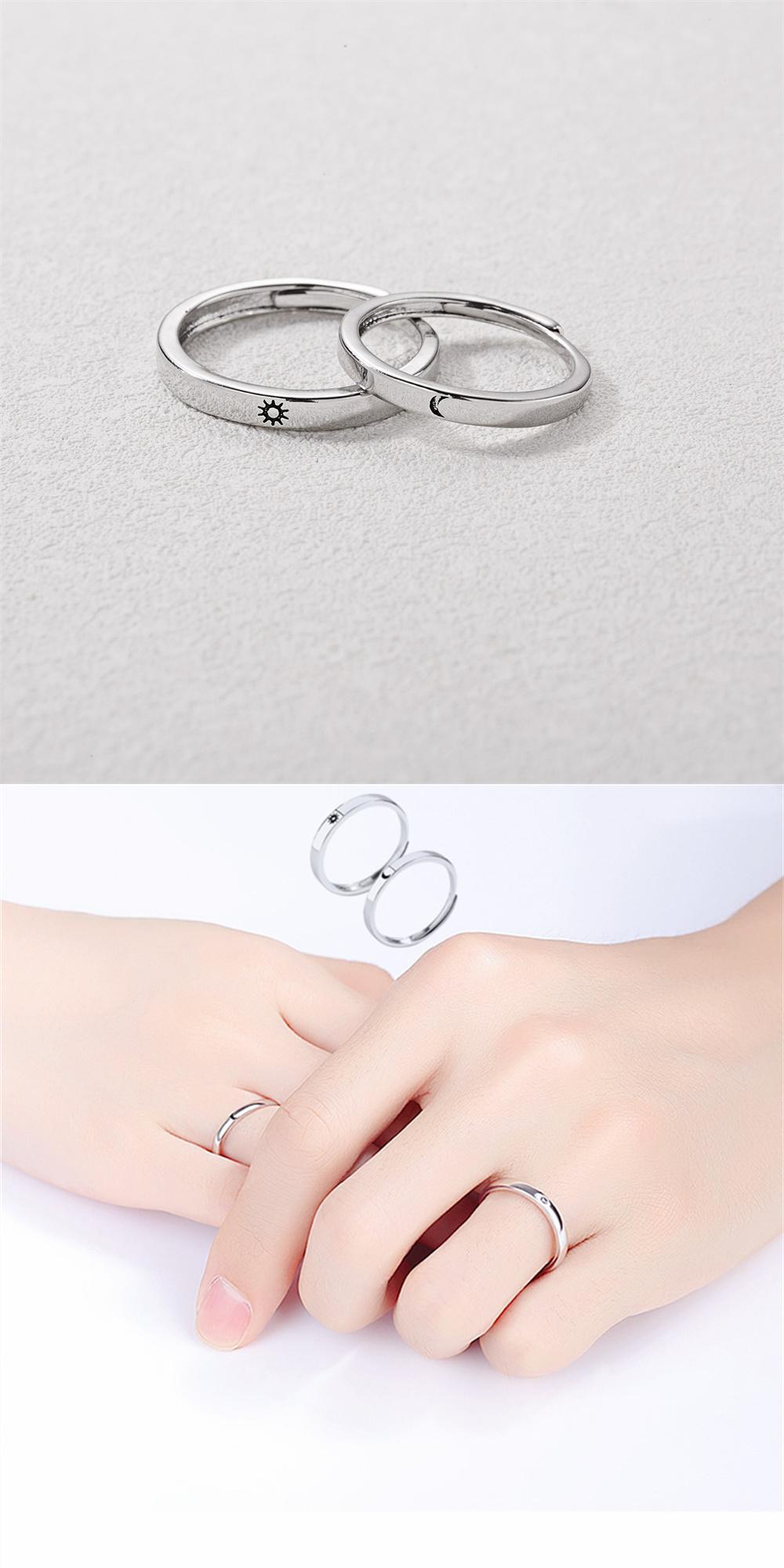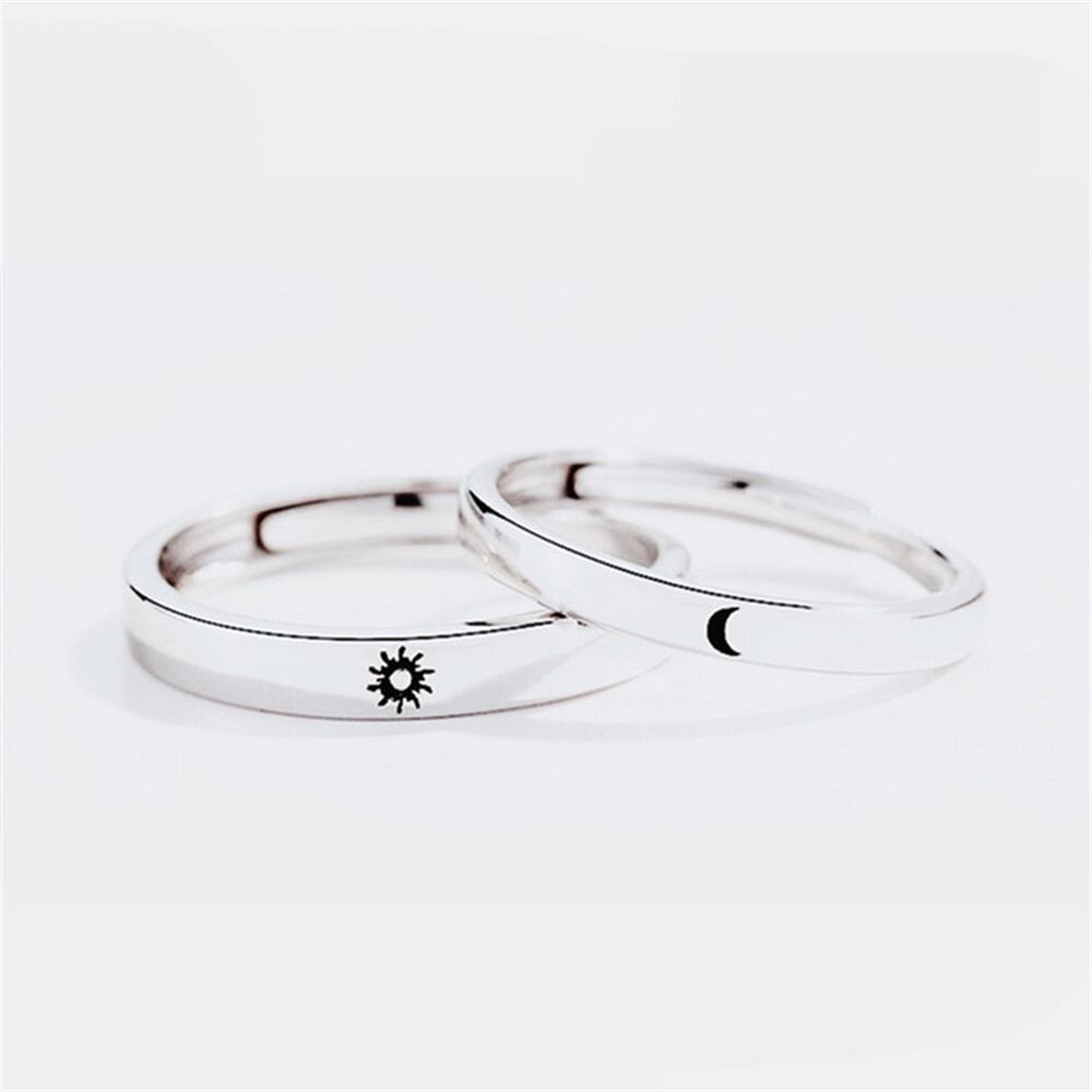 送料無料 ミニマリストシルバーカラーエンゲージメント結婚指輪リング女性男性サンムーンカップルリングバレンタインデージュエリーギフト 銀 アクセサリー AE1777714794841140