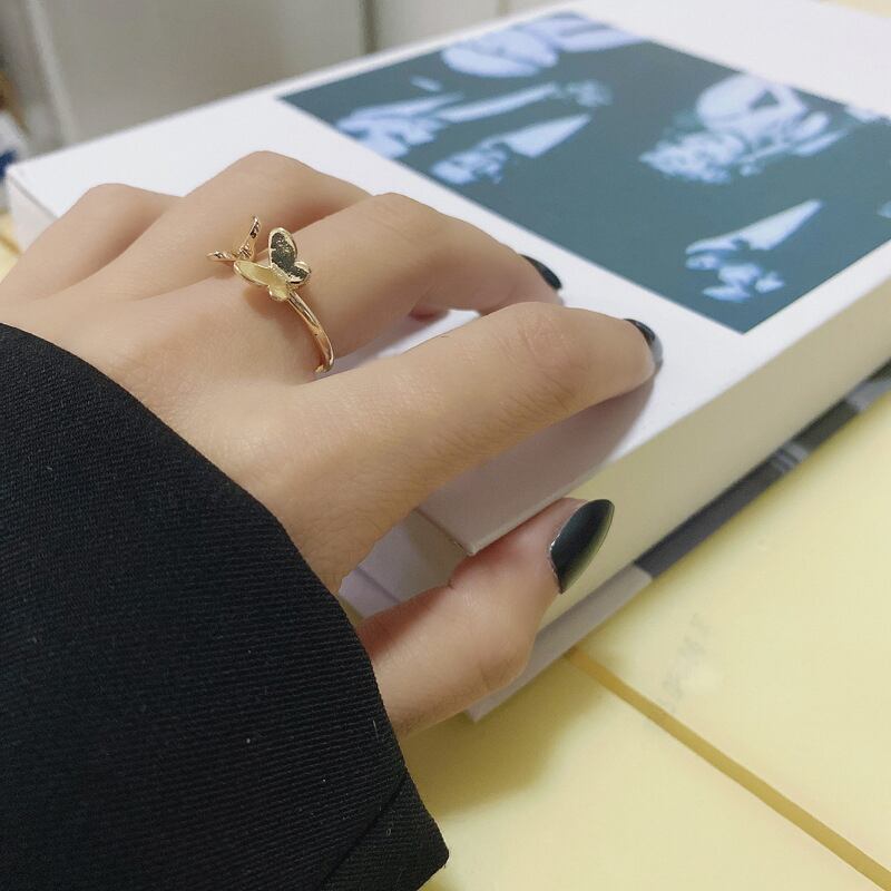 送料無料 シンプルなゴールドメタルかわいいバタフライリング可憐な昆虫ミニマリストオープンリングレディースガールズパーティージュエリーギフト 大人ガーリー スウィート キュート カジュアル 指輪 アクセサリー AE1777768999801382