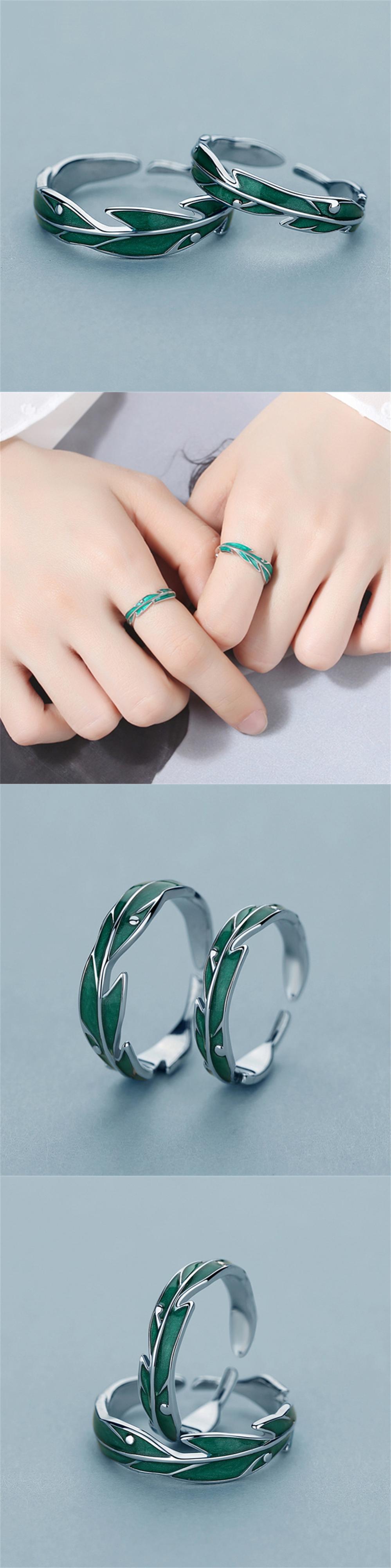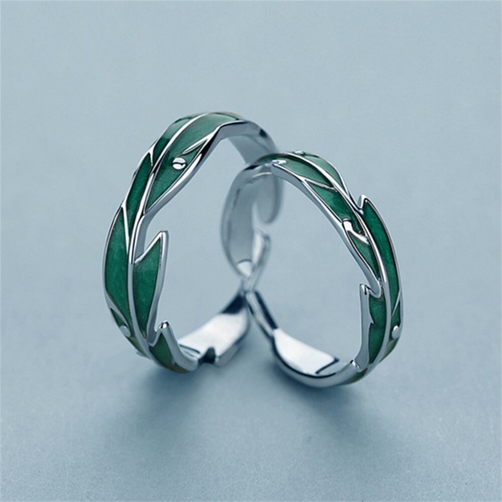 送料無料 緑の葉カップルリング女性男性愛好家はこれまでにシルバーカラーオープンリングブライダル婚約結婚式のジュエリーを愛する 指輪 グリーン 銀 アクセサリー AE177779625480502