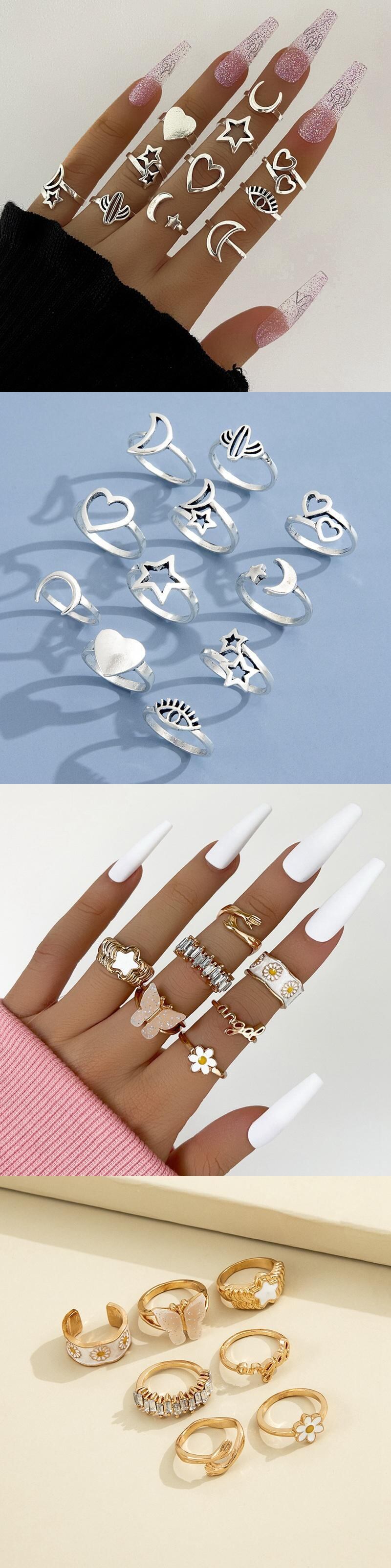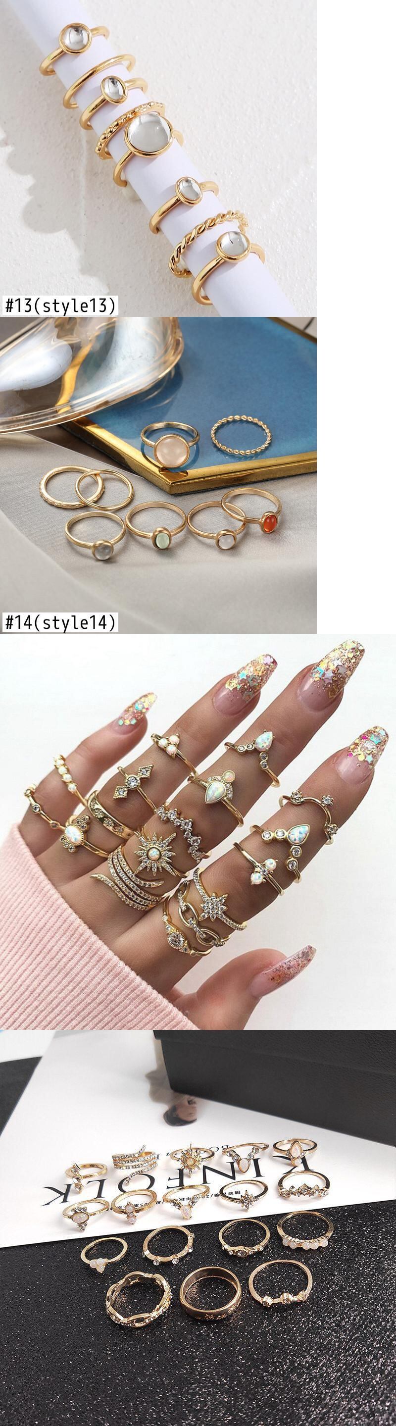 送料無料 ヴィンテージボヘミアンスタームーンクリスタルストーン幾何学的なリングセット女性ジルコンフラワーバタフライフィンガーリング2022トレンディなジュエリー 指輪 フラワーデザイン ビンテージ アクセサリー AE1777717524693849