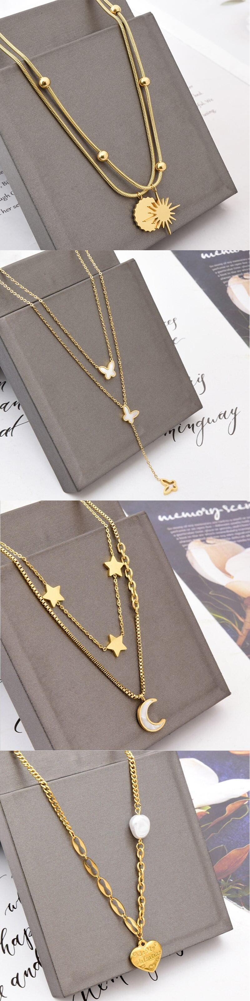 送料無料 MEYRROYUステンレス鋼パンクトレンドチェーンハート幾何学ペンダントネックレス女性ギフトパーティージュエリー レース アクセサリー AE001151457336035