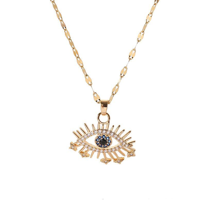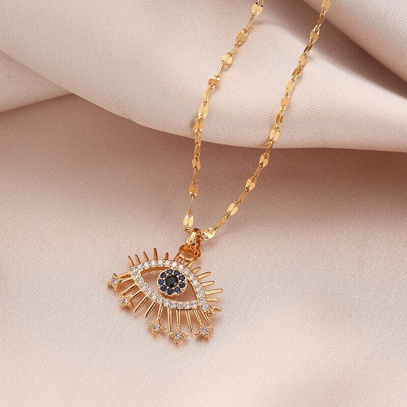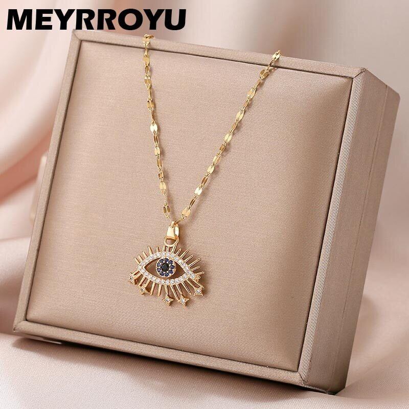 送料無料 MEYRROYUステンレススチールイービルアイブルーラインストーンペンダントネックレスヨーロッパとアメリカのヴィンテージゴシックジュエリー レース ビンテージ ヨーロピアン アクセサリー AE001197188230361