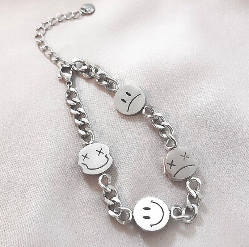 送料無料 MEYRROYUステンレススチールパンクヒップホップスマイリージュエリーセットレディースブレスレットネックレスリング2021トレンドパーティーギフト レース 指輪 アクセサリー AE001157776866815