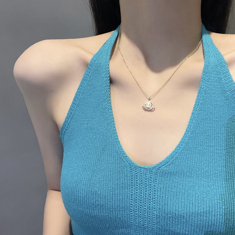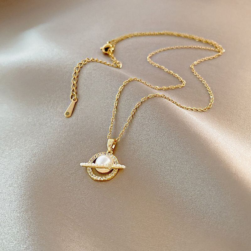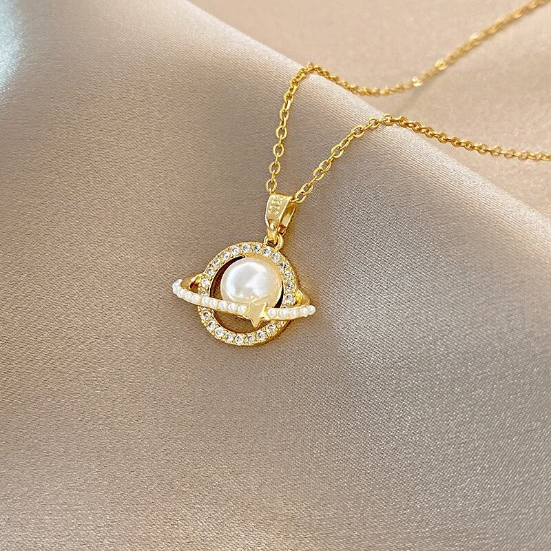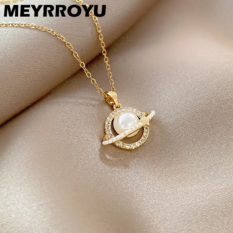 送料無料 MEYRROYUステンレススチールプラネットネックレス女性気質パールペンダントパーソナリティトレンド鎖骨チェーンパーティージュエリー レース 真珠 アクセサリー AE001174884908621