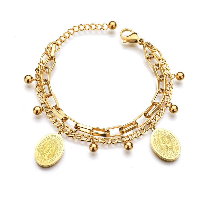 送料無料 MEYRROYUステンレススチールダブルレイヤーゴールドカラーシルバーカラーラウンドコインブレスレット2021レディースギフトパーティージュエリー 銀 アクセサリー AE001147874784955