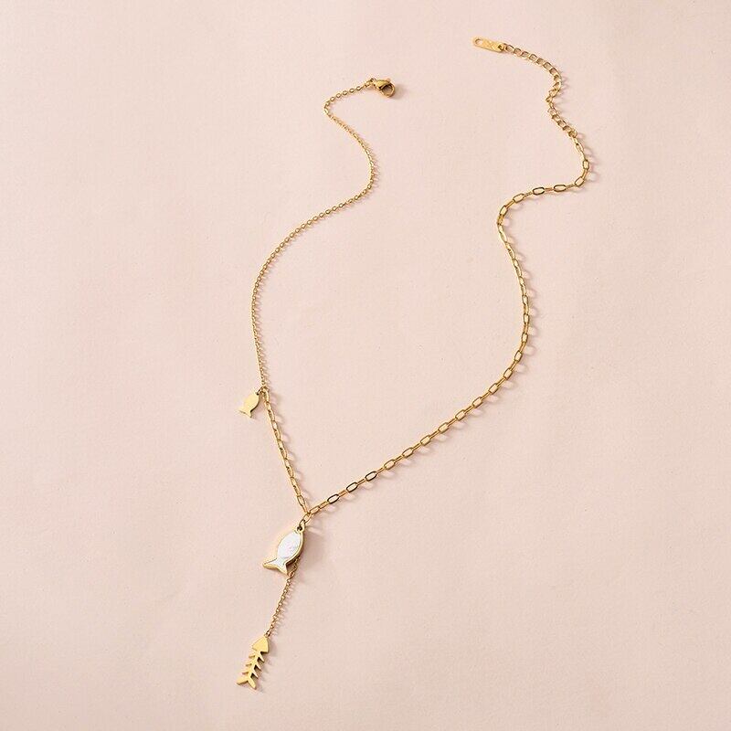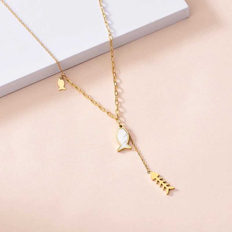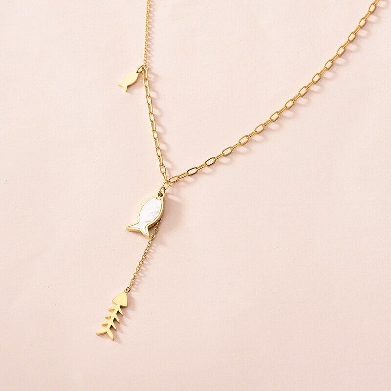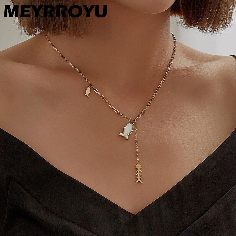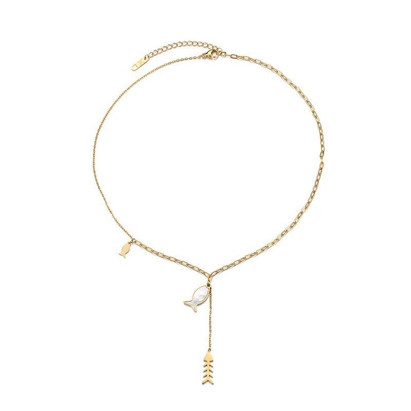 送料無料 Lステンレススチールシェルフィッシュペンダントネックレス女性パーソナリティゴールドカラークラビクルチェーンヴィンテージジュエリーギフト レース ビンテージ アクセサリー AE001114037282403