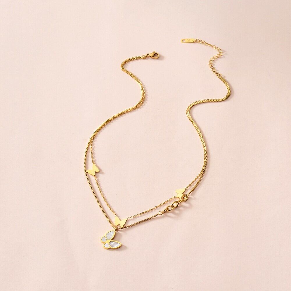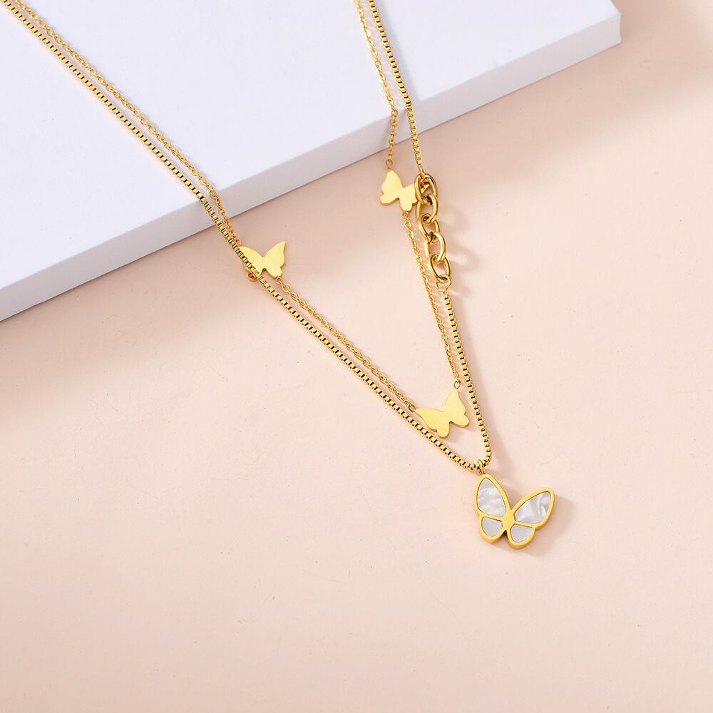 送料無料 MEYRROYUステンレススチールダブルレイヤーゴールドカラーバタフライネックレス絶妙なネックレス2021ジュエリー レース アクセサリー AE001131136431654