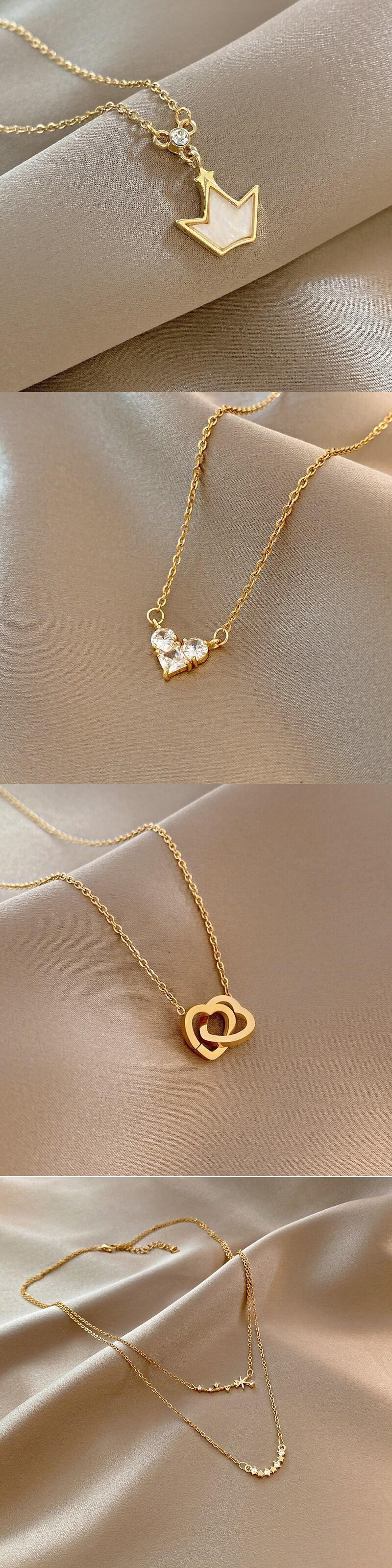 送料無料 MEYRROYUクリックゴールドカラーステンレススチールネックレス女性ジュエリー模倣パールビーズハートペンダントネックレスバースデーギフト レース 真珠 アクセサリー AE001169779788809