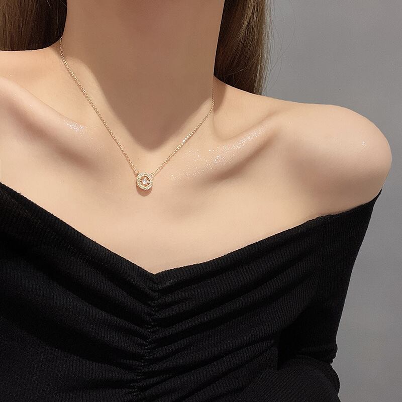 送料無料 トレンディな幾何学的なジルコンステンレス鋼のネックレス女性のシンプルなパーティージュエリーチョーカーアクセサリー レース アクセサリー AE001199227051912
