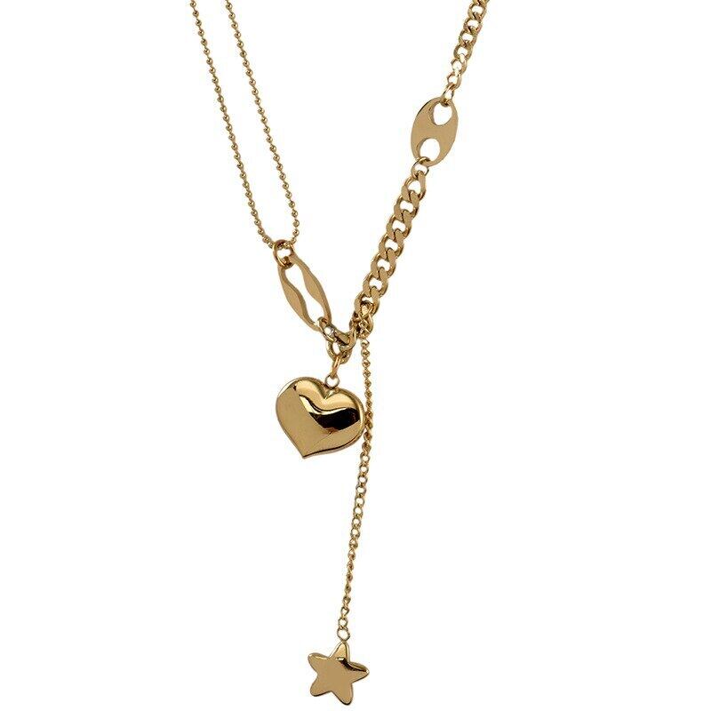 送料無料 MEYRROYUステンレススチールロマンティックゴールドカラーハートネックレスレディース幾何学チェーン2021トレンドパーティーギフトジュエリー レース アクセサリー AE001145943759151
