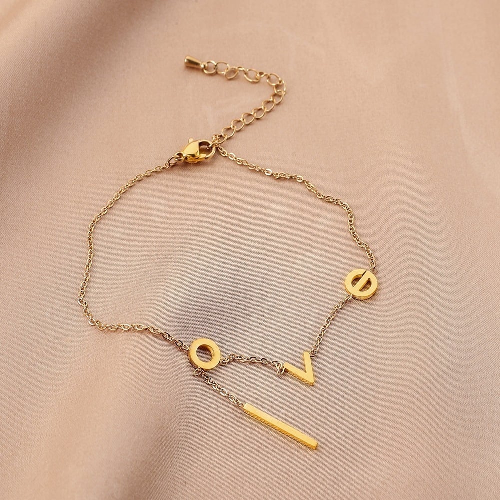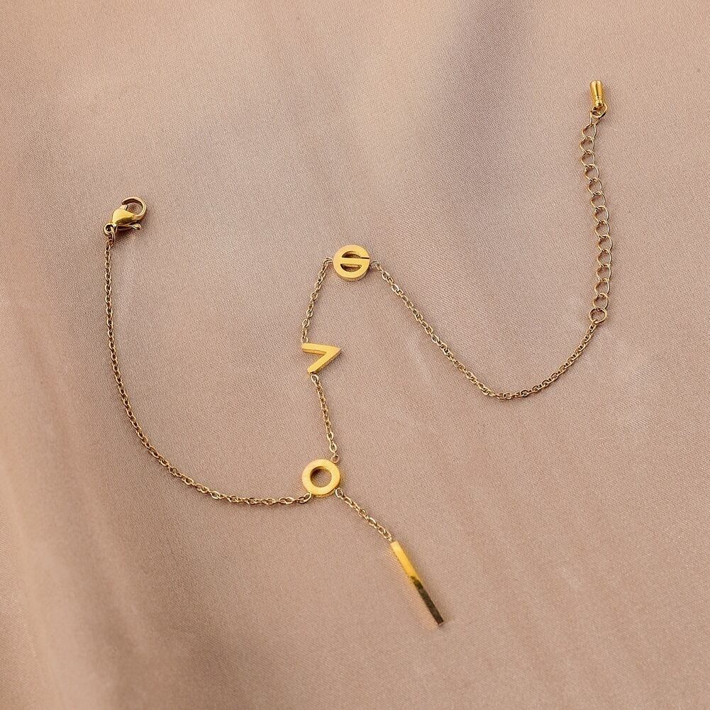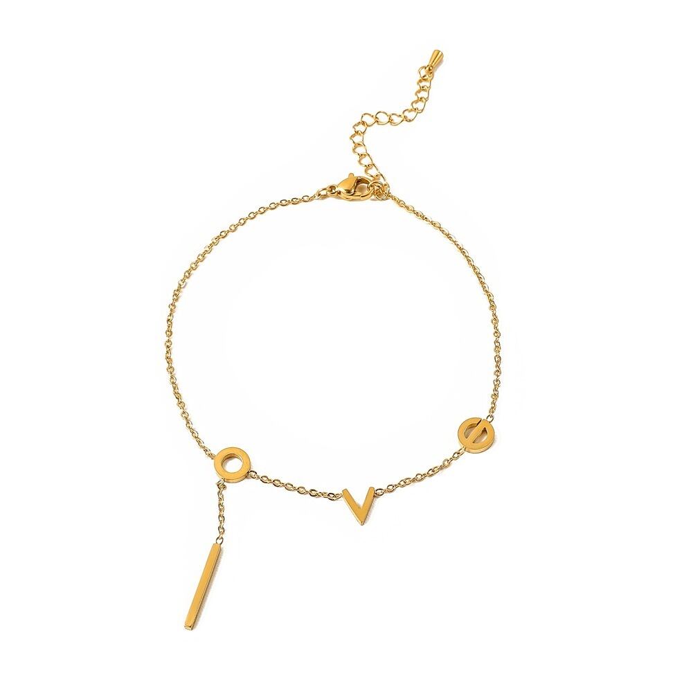 送料無料 MEYRROYUステンレススチールゴールドカラーレターラブチェーンアンクレットウィメンズパーティージュエリー アクセサリー AE001190825465872