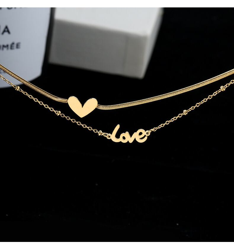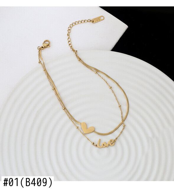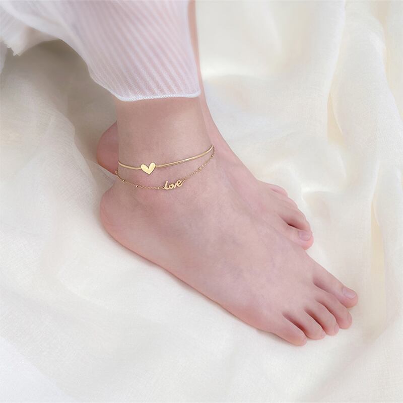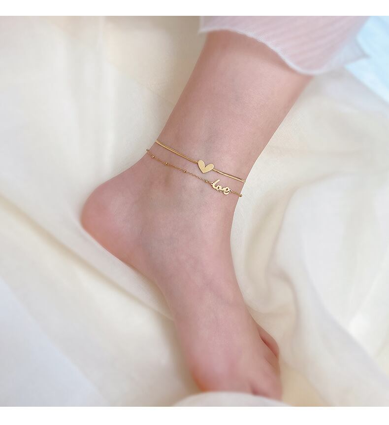 送料無料 MEYRROYUステンレススチールダブルレイヤーゴールドカラーハートチェーンアンクレットラブスネークボーンアンクレット女性 アクセサリー AE001190847008200
