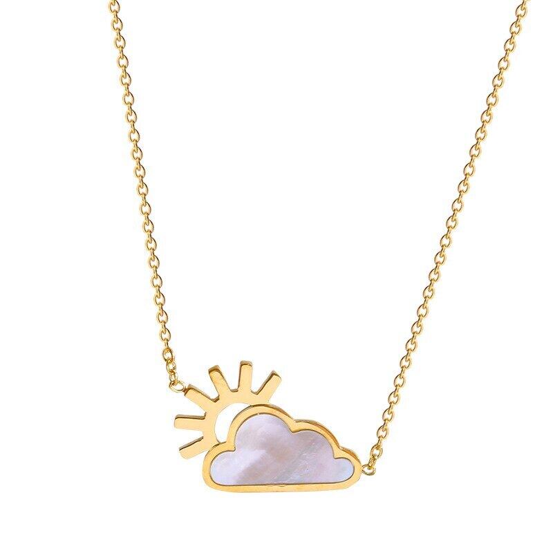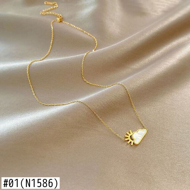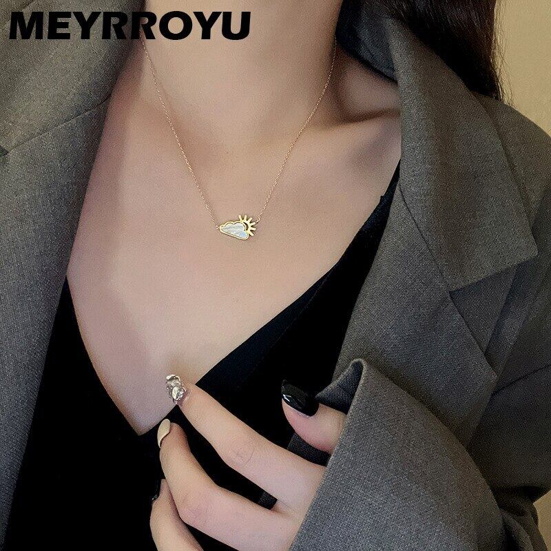 送料無料 MEYRROYUステンレススチールクラウドサンペンダントシェルネックレス女性トレンド気質高級ニッチ鎖骨チェーンギフト レース アクセサリー AE001180716420086