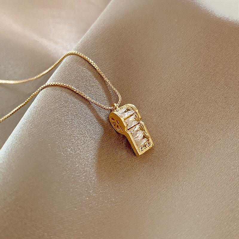 送料無料 MEYRROYUステンレススチールシンプルマイクロ象眼細工ジルコンホイッスルペンダントネックレス女性パーソナリティレトロ鎖骨チェーン レース アクセサリー AE001139701970101