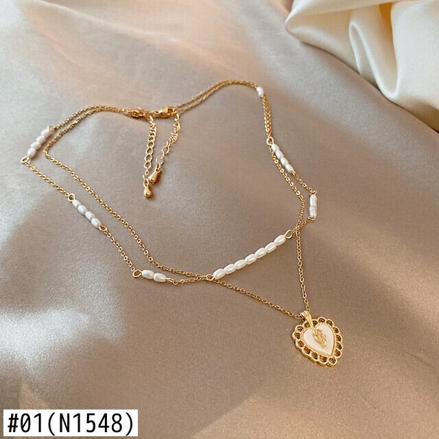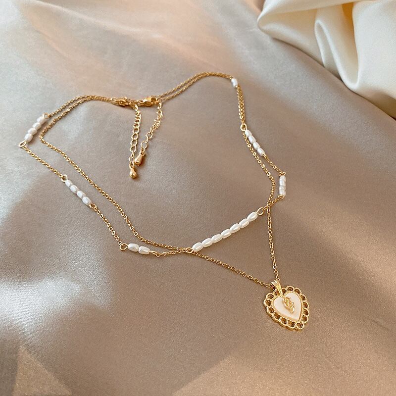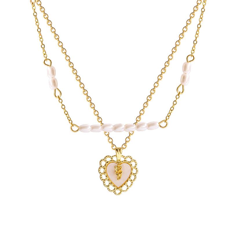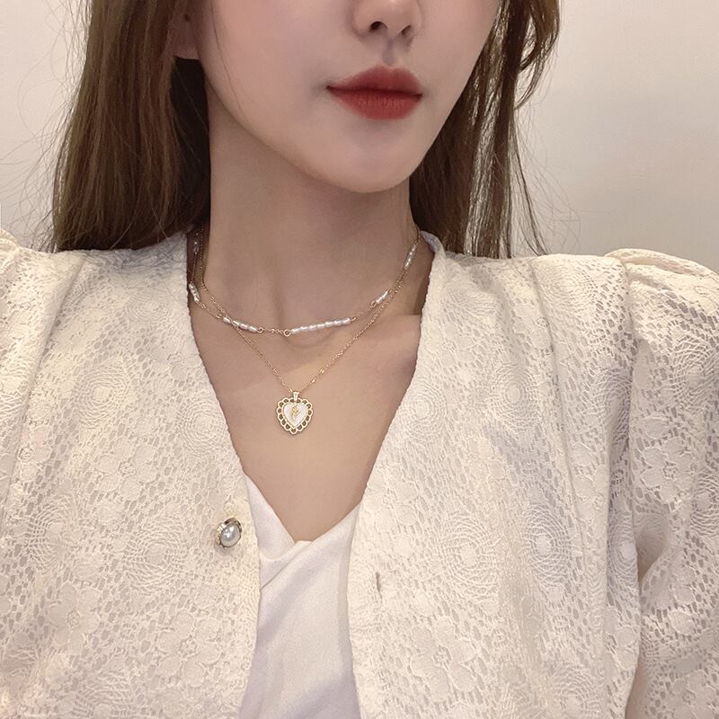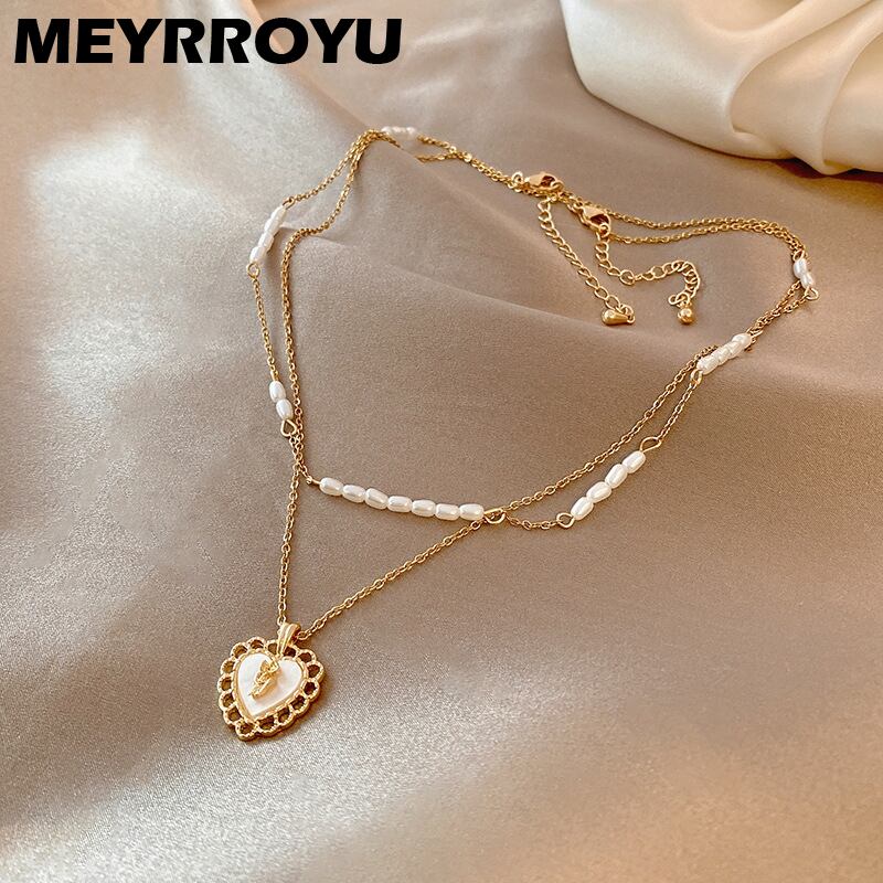 送料無料 MEYRROYUステンレススチールハートペンダントパールネックレス女性2層ネックレスジュエリーギフトアクセサリー レッド レース 真珠 アクセサリー AE001130616869084