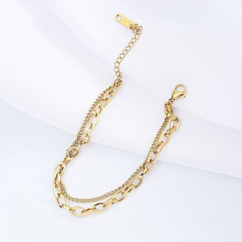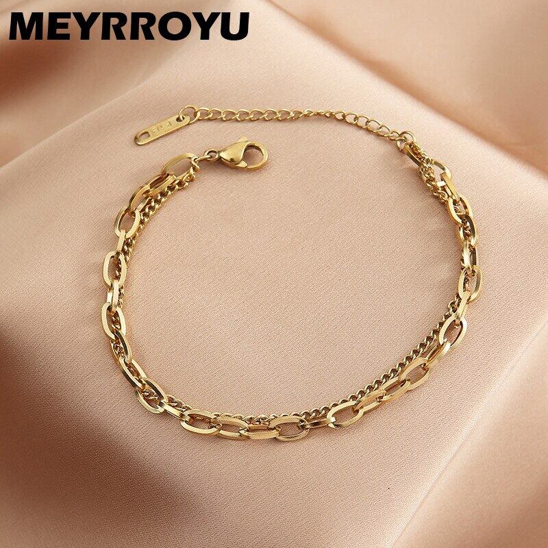 送料無料 MEYRROYUステンレススチールパンクヒップホップ2層幾何学的ブレスレット女性2021トレンドパーティーギフトジュエリー アクセサリー AE001124530104523