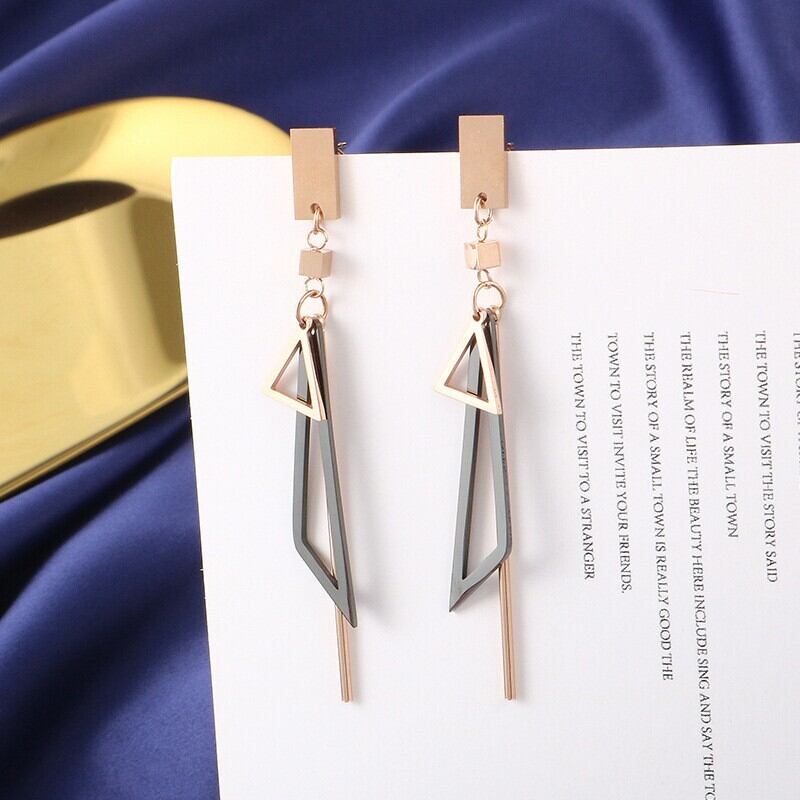 送料無料 MEYRROYUステンレススチールゴールドカラーマルチレイヤーブラックトライアングルダングルピアス2021トレンディなギフトパーティージュエリー イヤリング リング 指輪 アクセサリー AE00114953042570