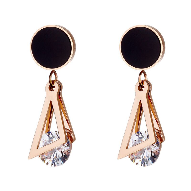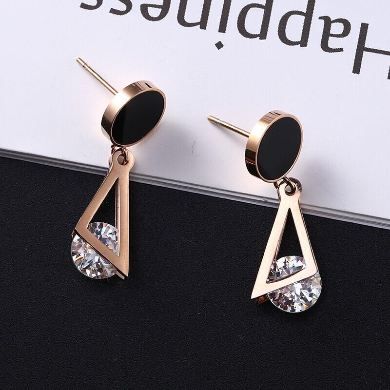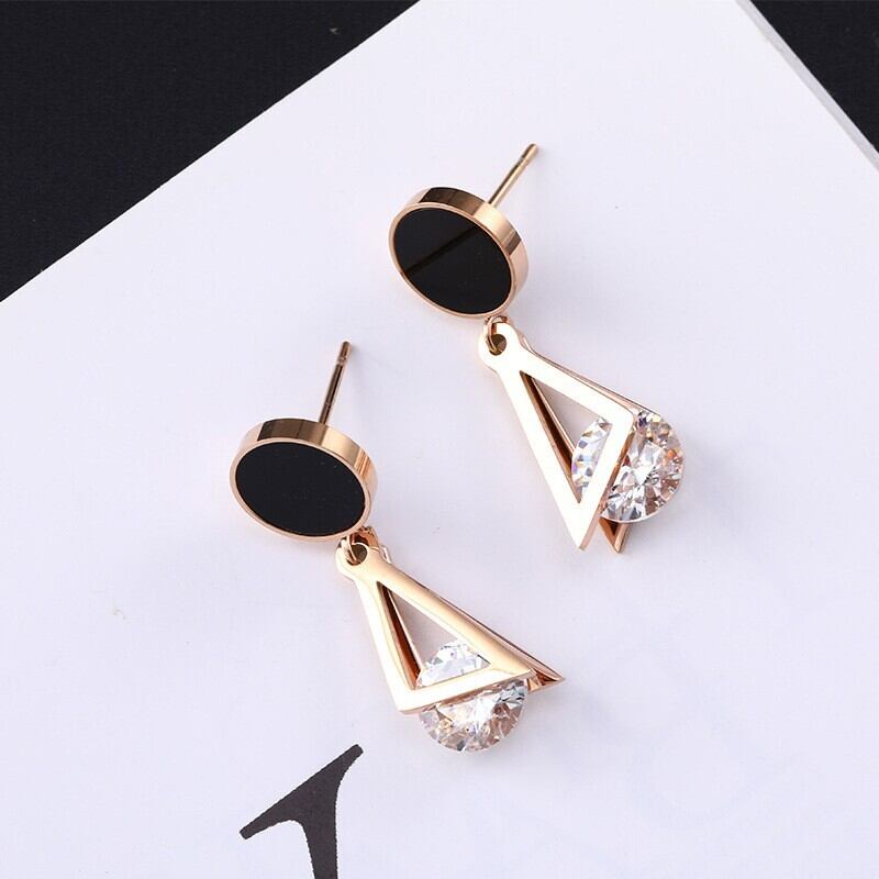 送料無料 MEYRROYUステンレススチールラインストーンゴールドカラー2レイヤートライアングルイヤリング2021トレンディな女性ギフトパーティージュエリー 指輪 アクセサリー AE001119066120703