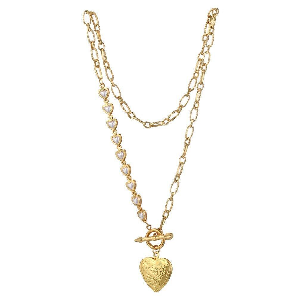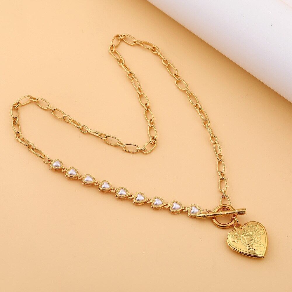 送料無料 MEYRROYUステンレススチールゴールドカラーパールハートネックレス絶妙なチョーカーネックレス2021トレンディなジュエリーコリアー レース 真珠 アクセサリー AE001144866856275