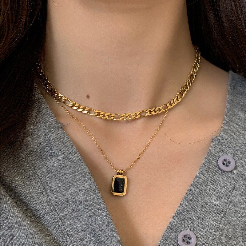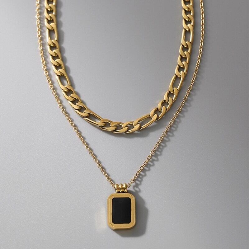 送料無料 MEYRROYUステンレススチールパンク2層エナメルキューブペンダントネックレスウィメンズチョーカー2021トレンドパーティーギフトジュエリー レース アクセサリー AE001132050737322