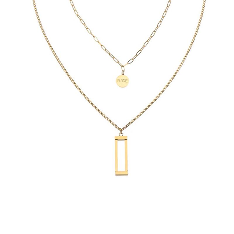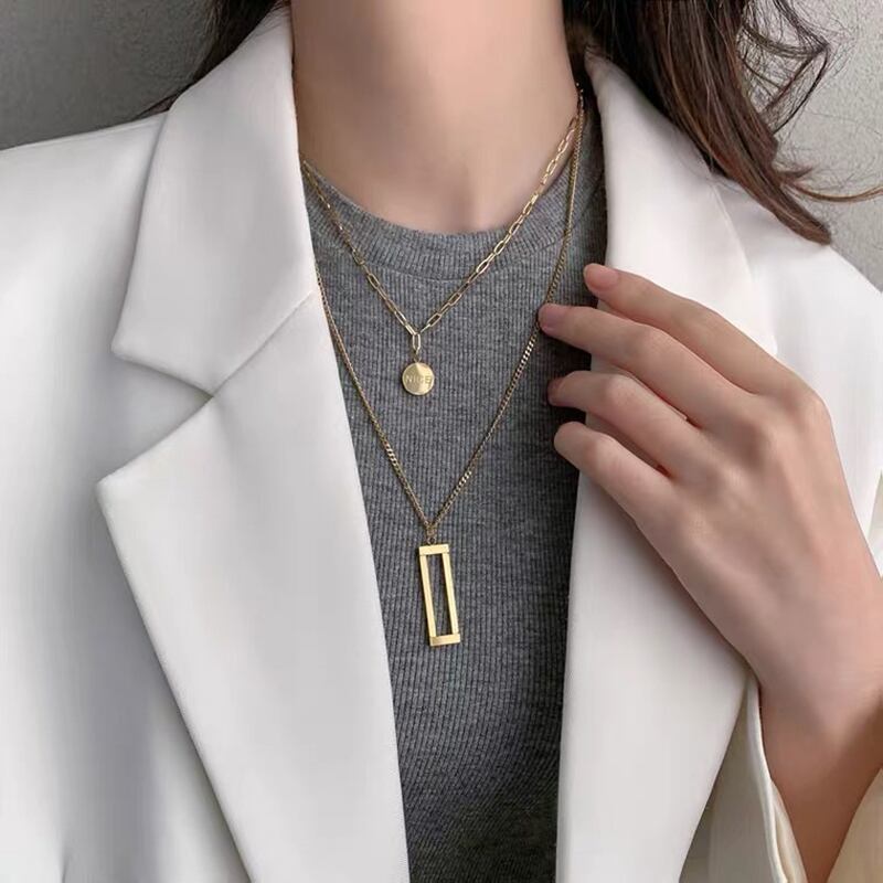 送料無料 MEYRROYUステンレス鋼パンク2層長方形幾何学的ネックレス女性チェーン2021トレンドパーティーギフトジュエリー レース アクセサリー AE001112281022243