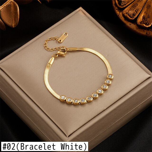送料無料 ステンレススチール18Kゴールドメッキラインストーンスネークチェーンチャームブレスレット女性ファムパーティーギフトPulseras フェミニン アクセサリー AE001158145674527