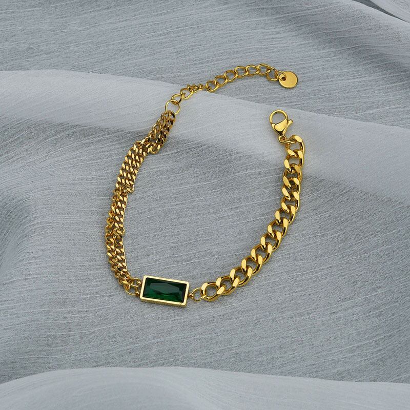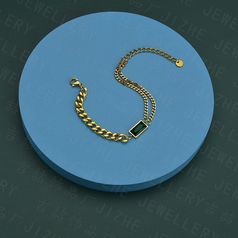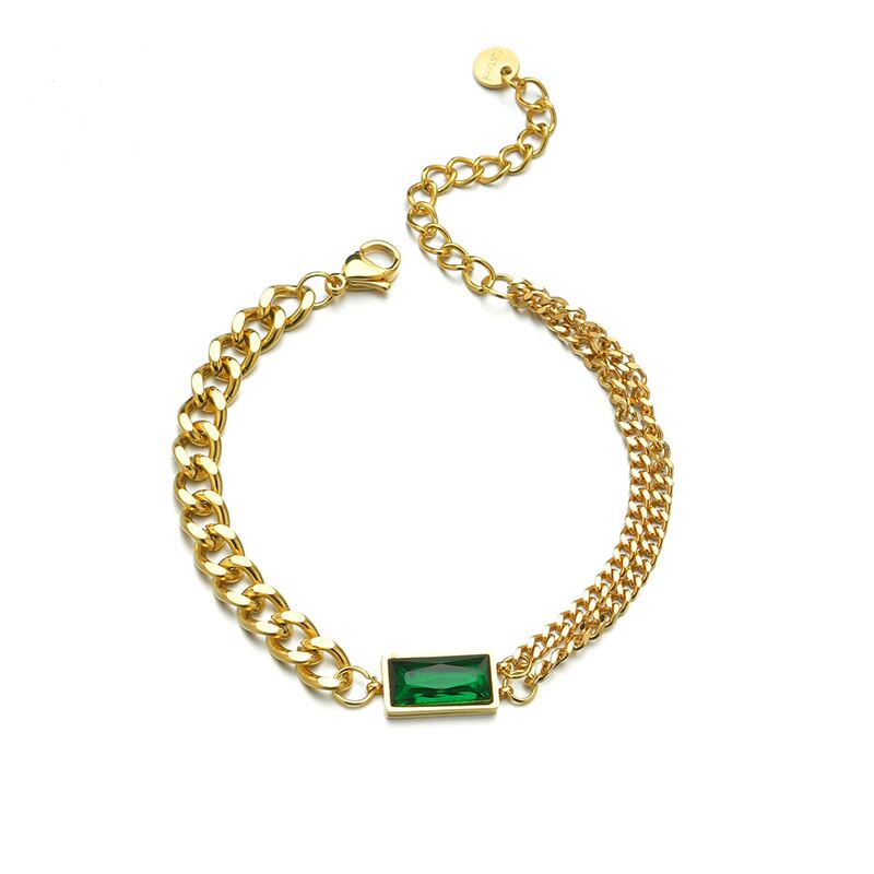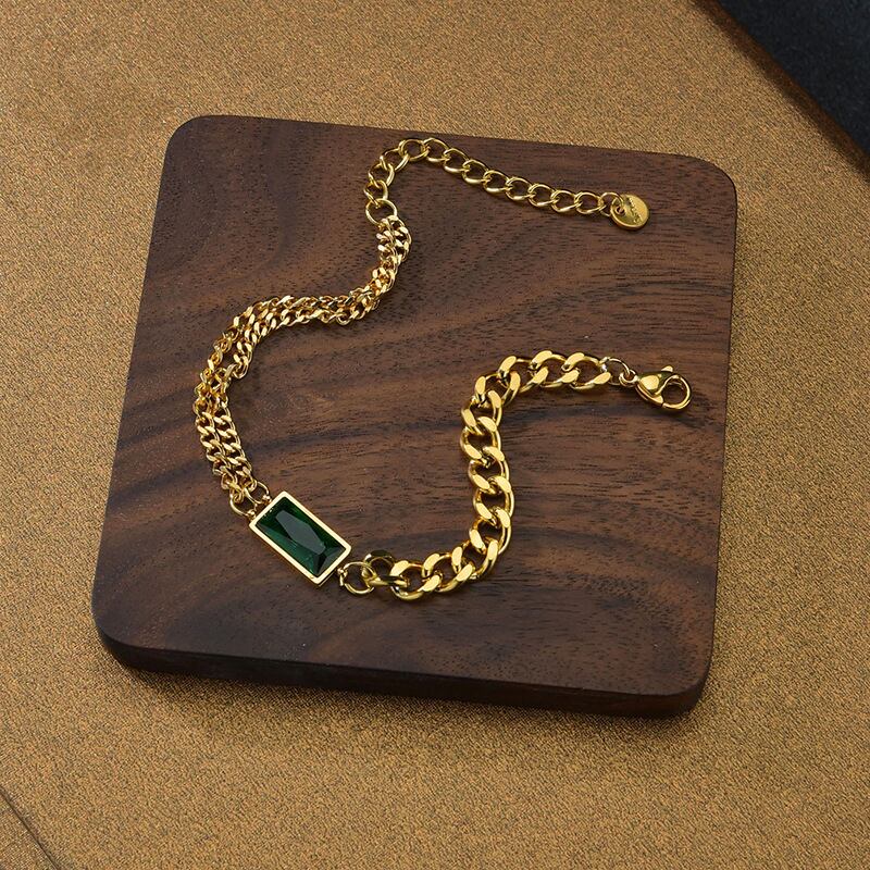 送料無料 MEYRROYUステンレススチールトレンディなエメラルドグリーンの小さなスクエアチェーンブレスレット2021女性男性ギフトパーティージュエリー スクウェア 翠玉 緑玉 アクセサリー AE001184776254740
