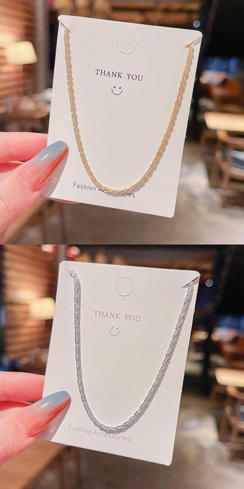 送料無料 MEYRROYUステンレス鋼ロマンチックな2色フラッシュ幾何学的なネックレス女性チェーン2021トレンドパーティーギフトジュエリー レース アクセサリー AE001176961315923