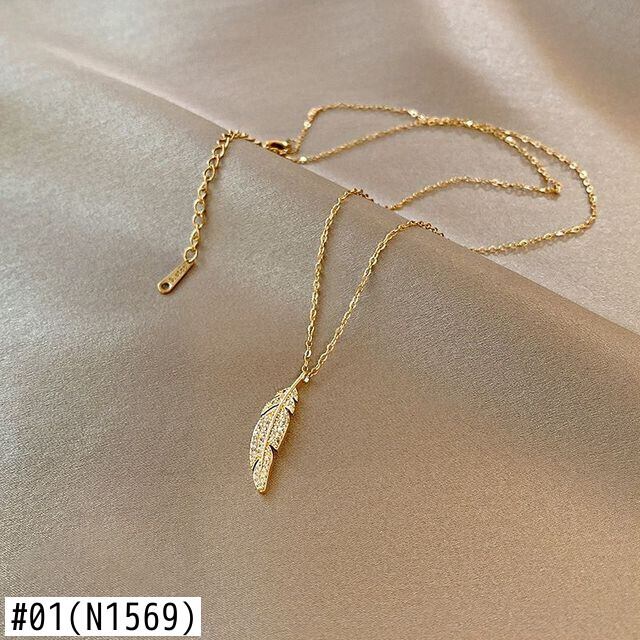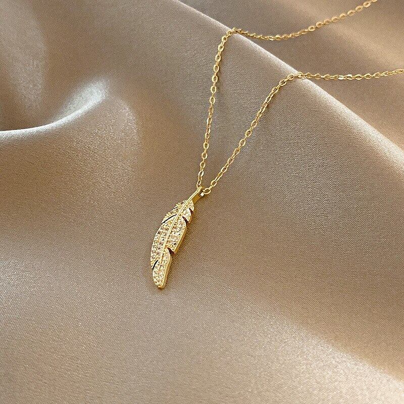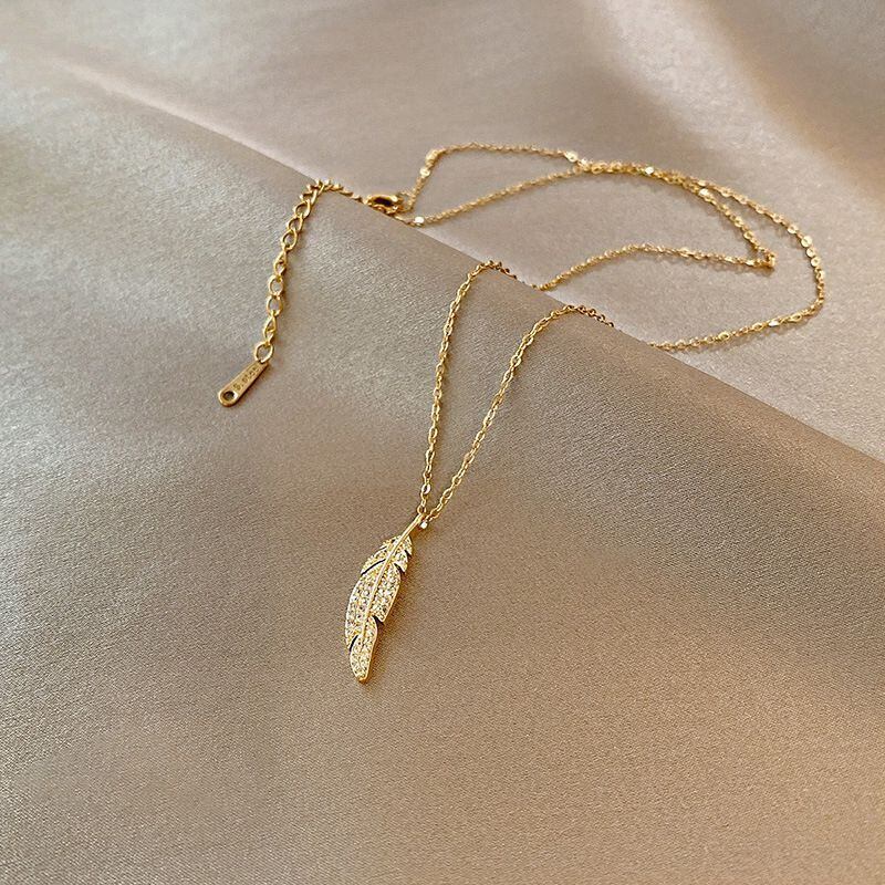 送料無料 シンプルな葉のステンレス鋼のネックレス女性2022トレンディな性格ジルコン鎖骨チェーンパーティージュエリー レース アクセサリー AE001151009788032