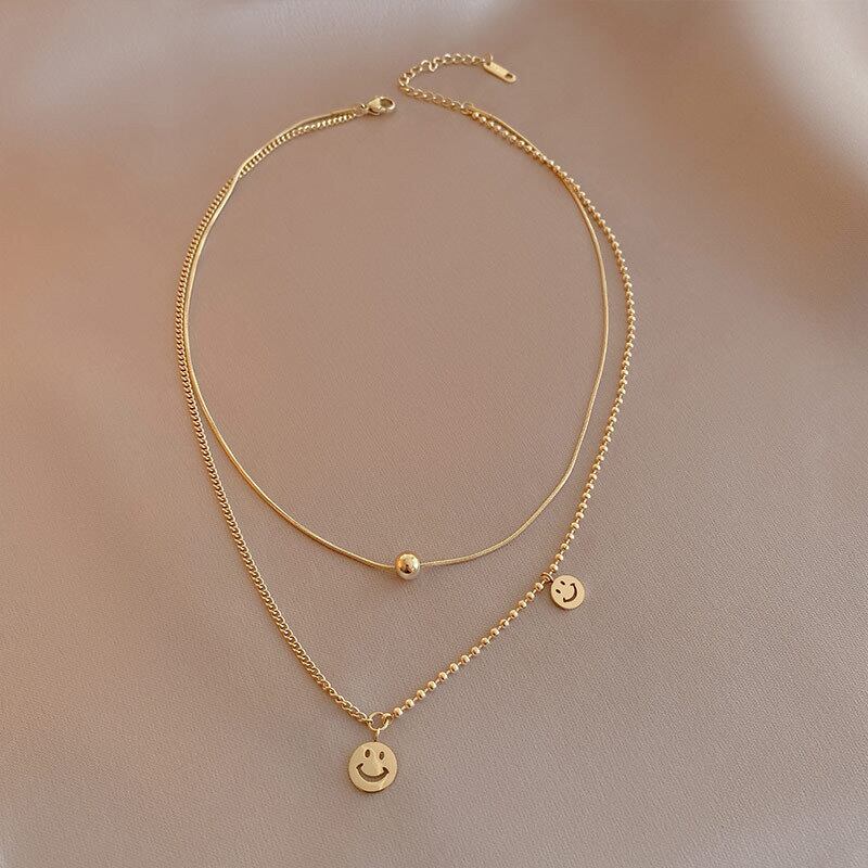 送料無料 MEYRROYUステンレス鋼2層スミリングフェイスビーズネックレス女性チョーカー2021トレンディなパーティーギフトジュエリーpulseira レース アクセサリー AE001164693314183